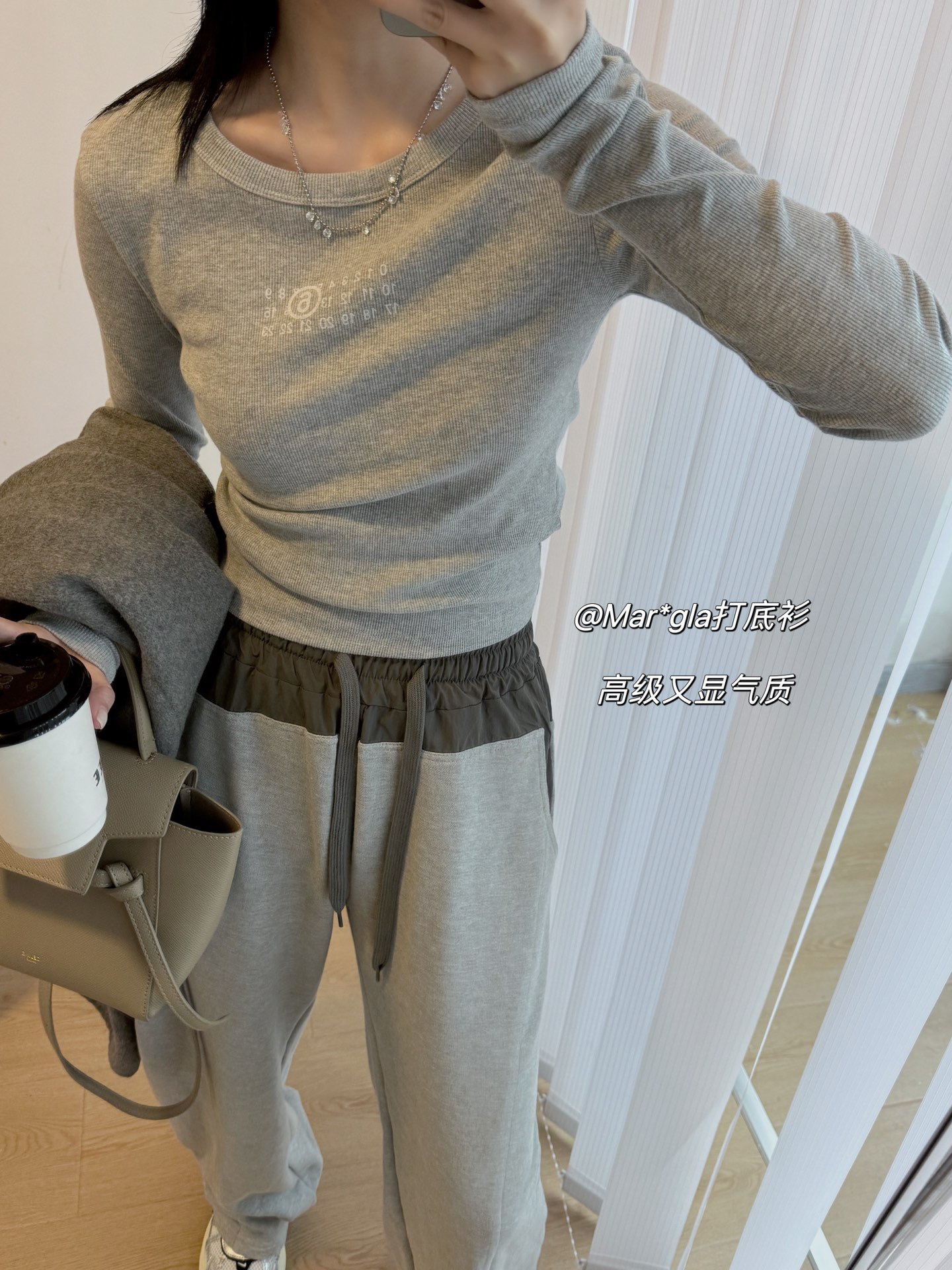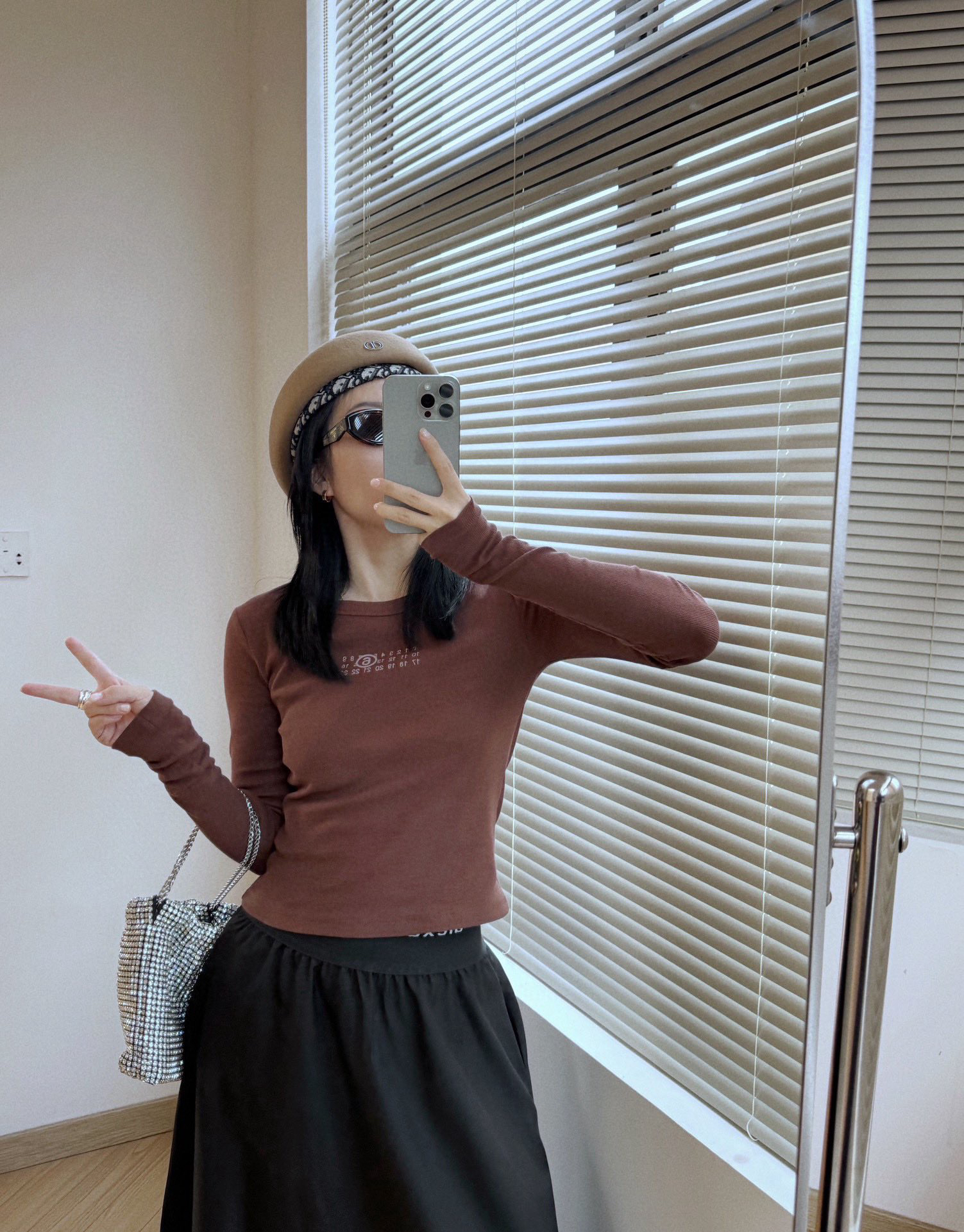 春天少不了这种好搭配的基础款Mm6 Maison Margiela打底衫 比较修身的款式 长度刚刚好! 合体有余量彰显身形曲线 侧面正面都是玲珑有致的 肩膀的部分也是做得刚好卡住肩线 能穿出直角肩的效果 可以修饰肩型 看起来更立挺 每一处都恰好处的包裹身体曲线 穿上就是舒适自在又显瘦的存在 直接穿出气质好身材!