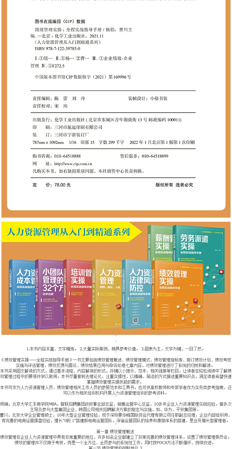 人力资源管理从入门到精通系列 绩效管理实操 全程实战指导手册 绩效管理模式 绩效管理指标库 绩效考核实施与评估管理应用书籍 无 化学工业出版社 9787122397850
