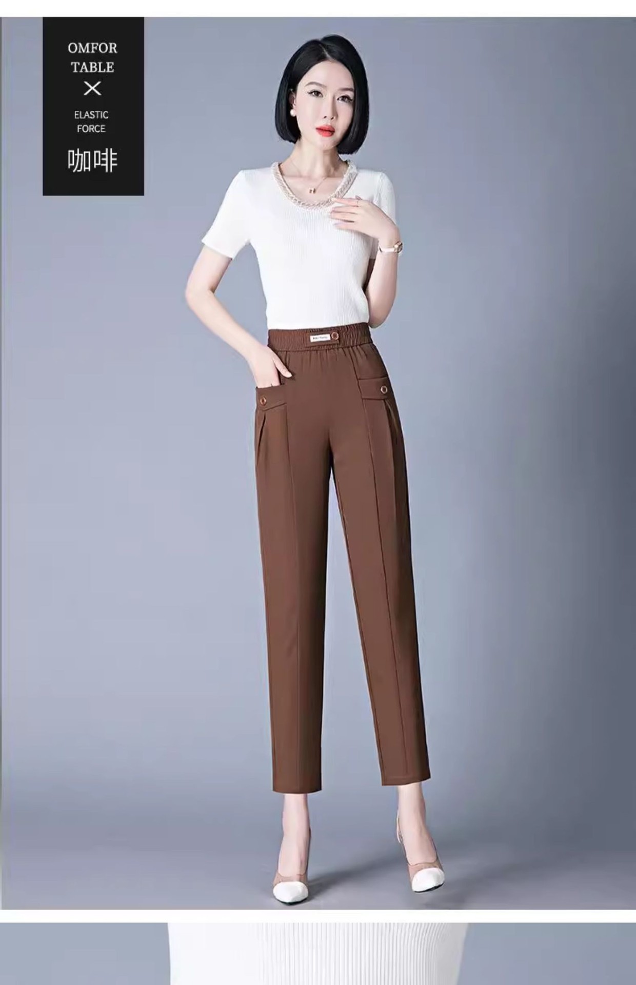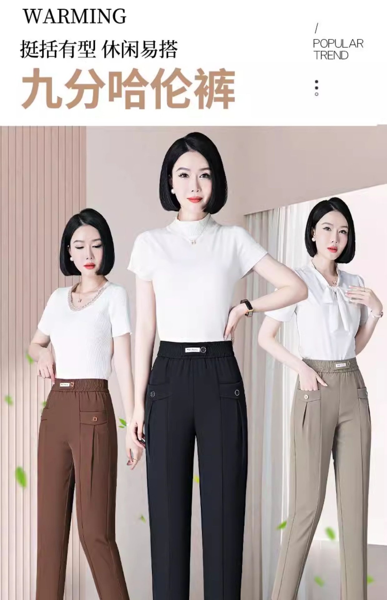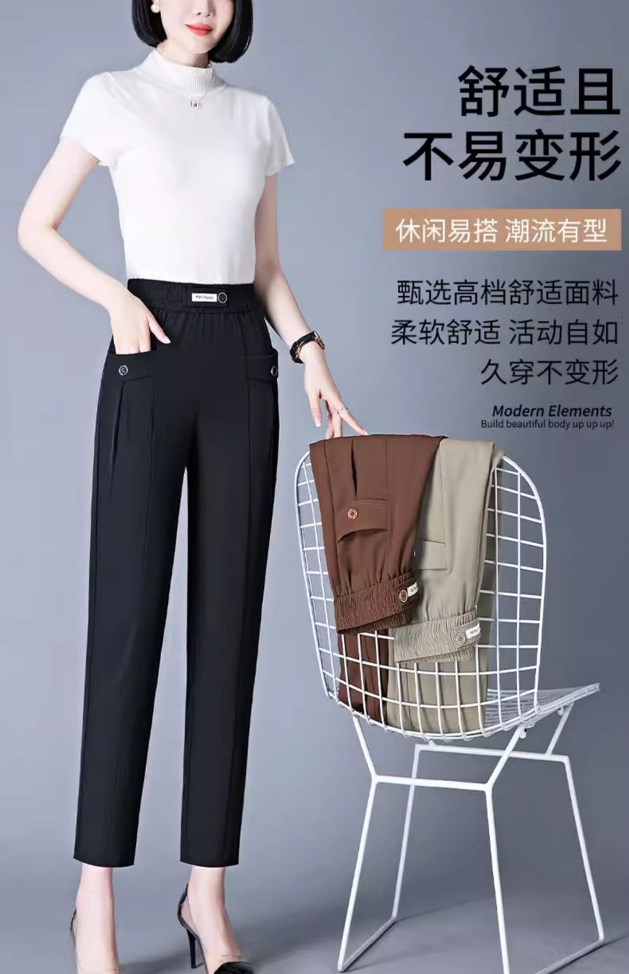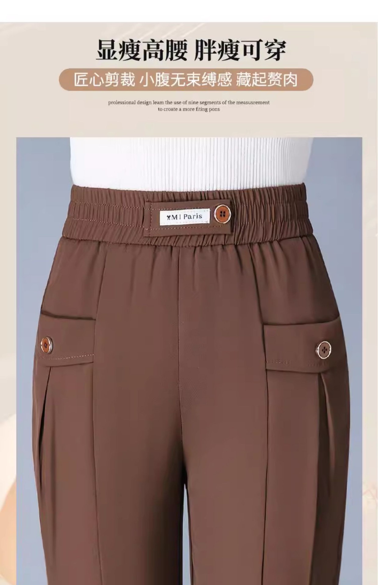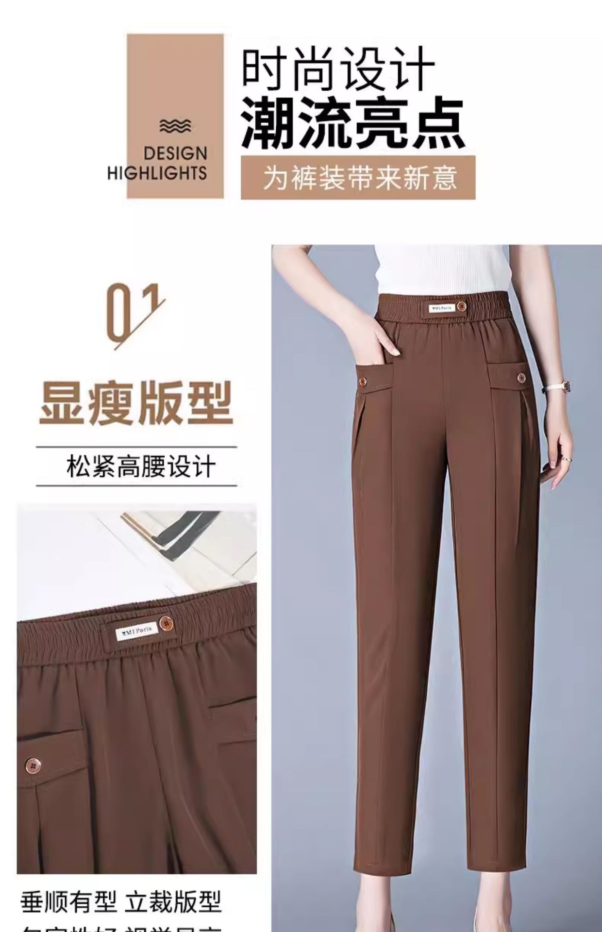 SMZ15842 2024冰凉哈伦裤女夏季薄款高腰显瘦垂感中年妈妈九分萝卜休闲裤子