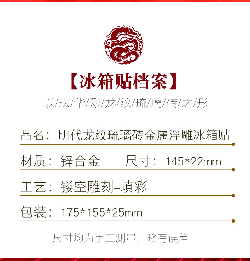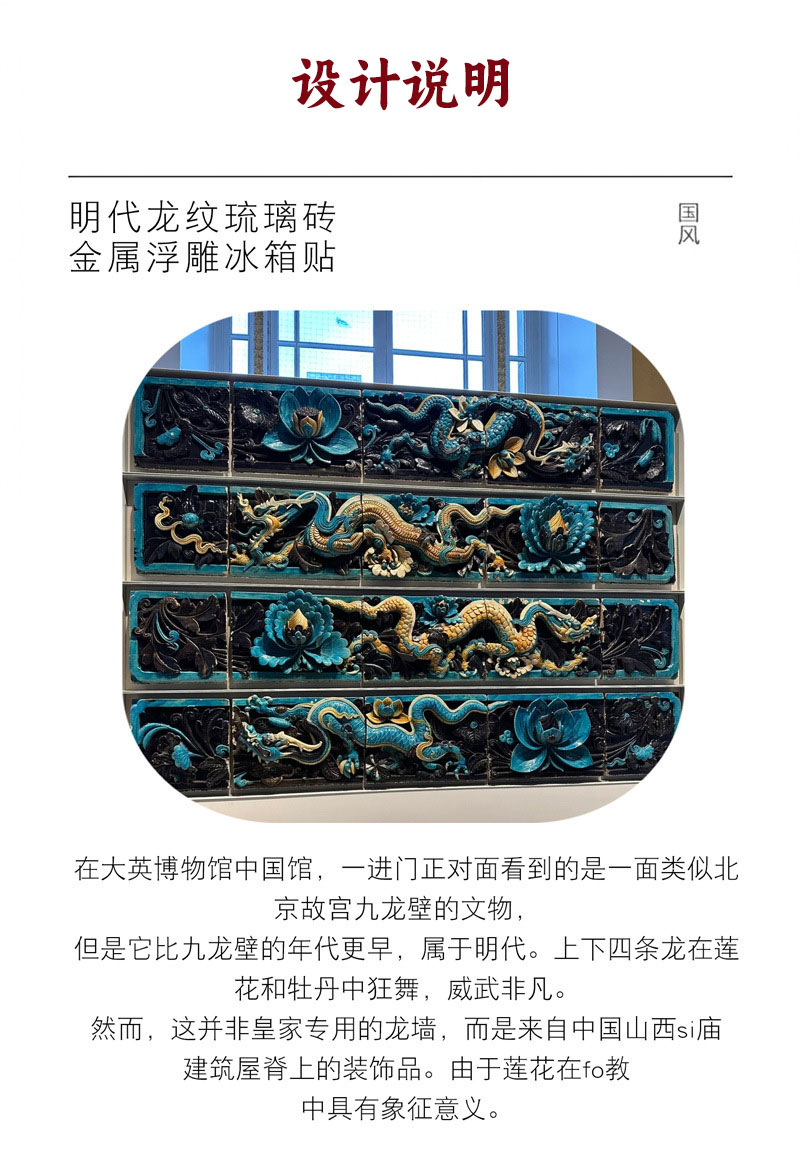 【明代龙纹琉璃浮雕冰箱贴】金属磁吸中国风文创旅游纪念品节日伴手礼