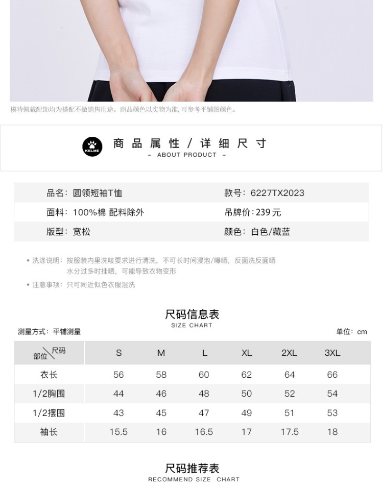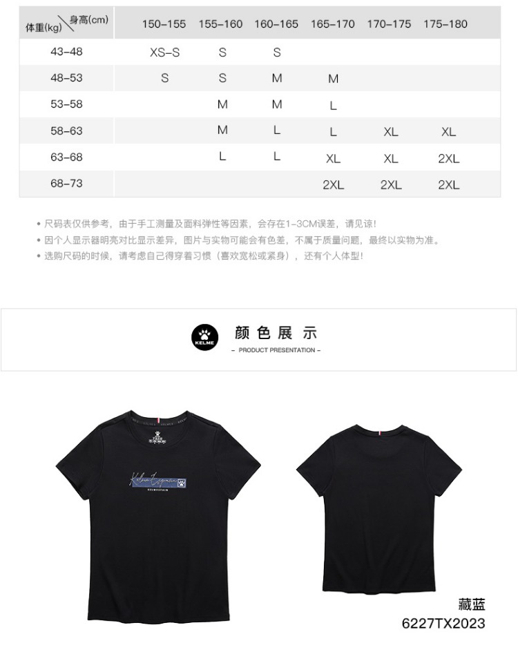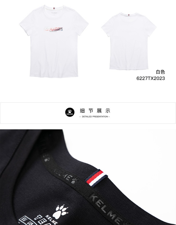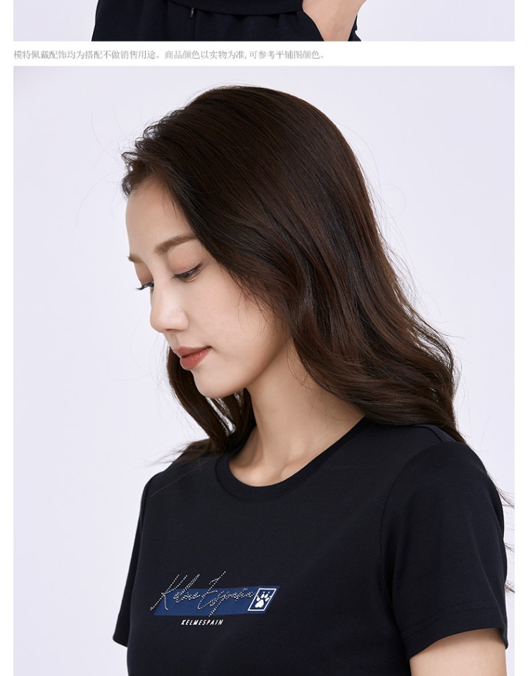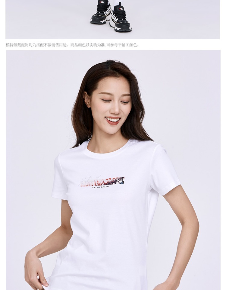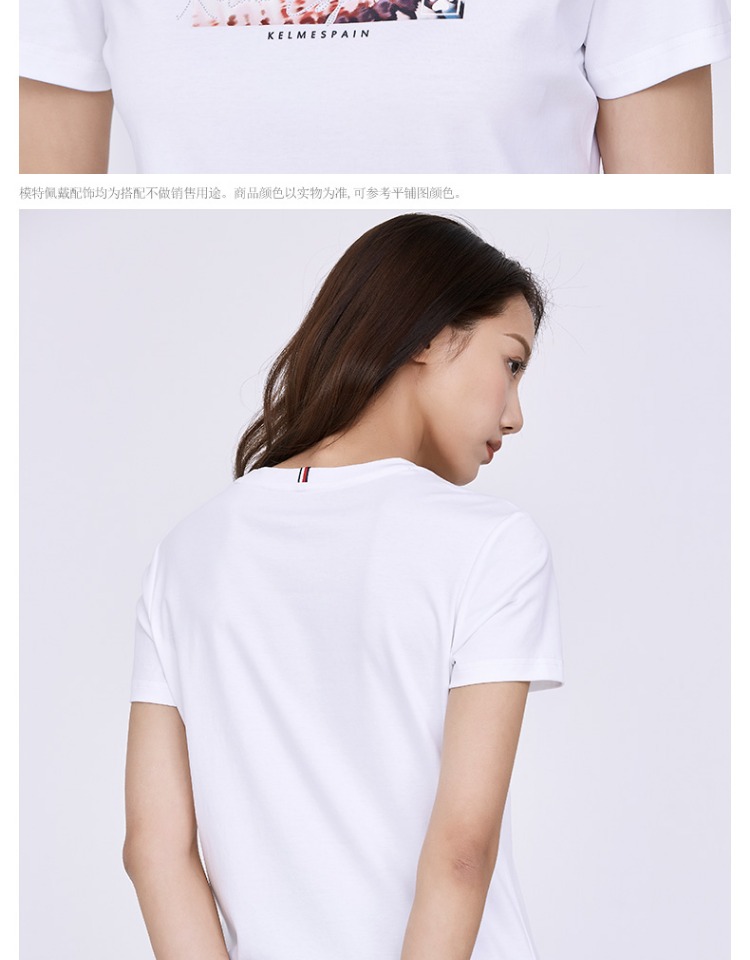 卡尔美短袖女夏季官方新款修身t恤休闲女装白色半袖运动上衣