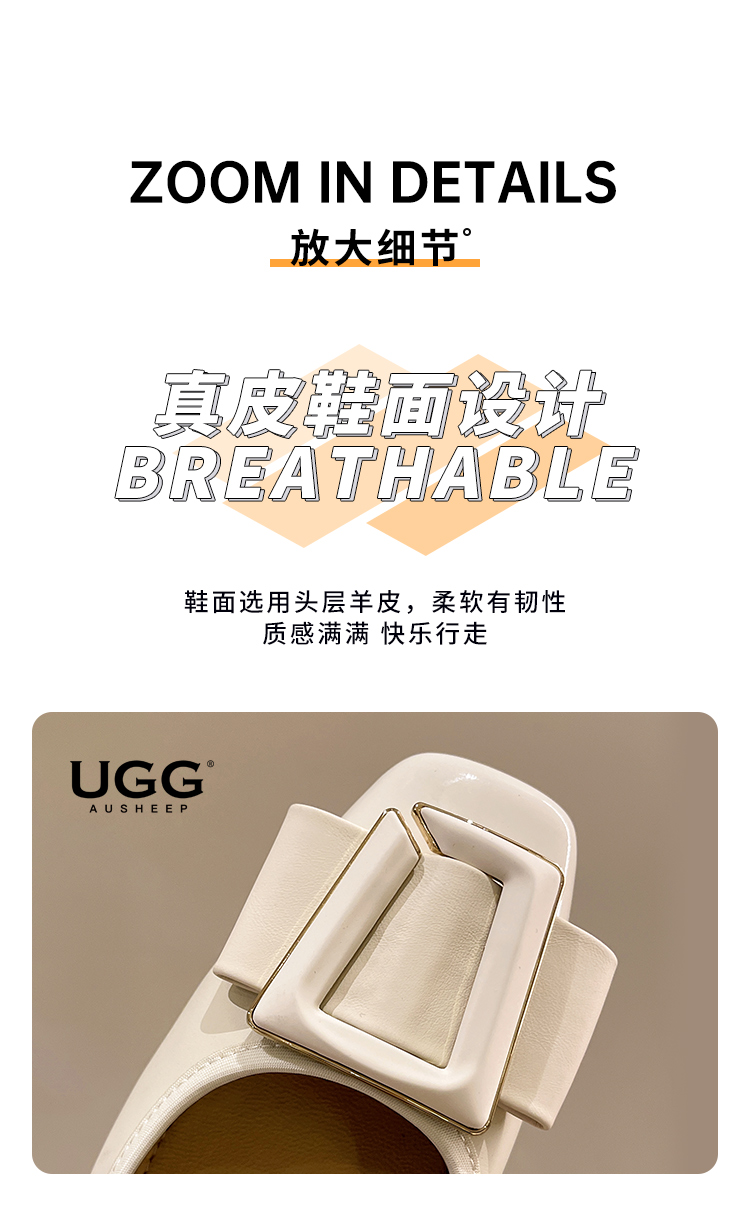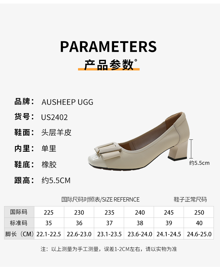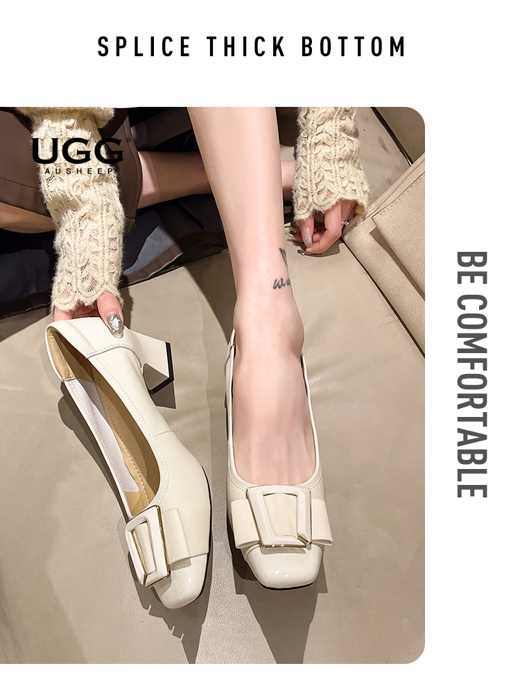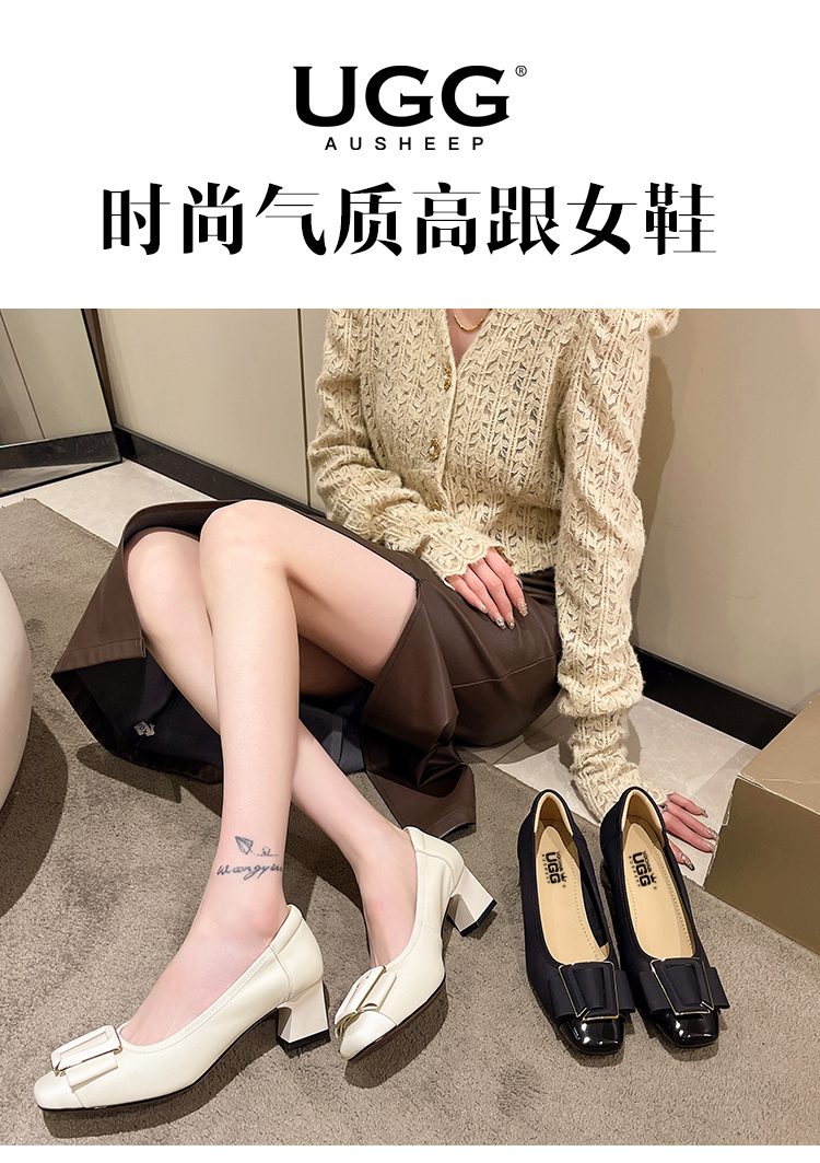 澳洲UGG头层羊皮 2024新款时尚方扣蝴蝶结 不累脚通勤小皮鞋 高跟鞋女