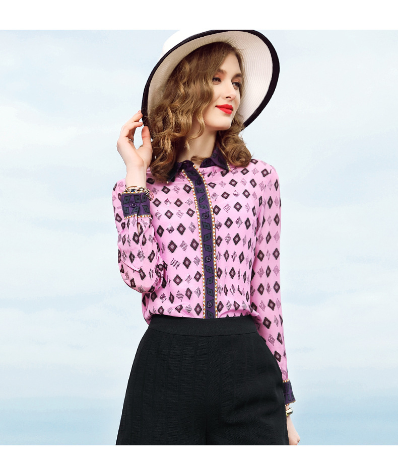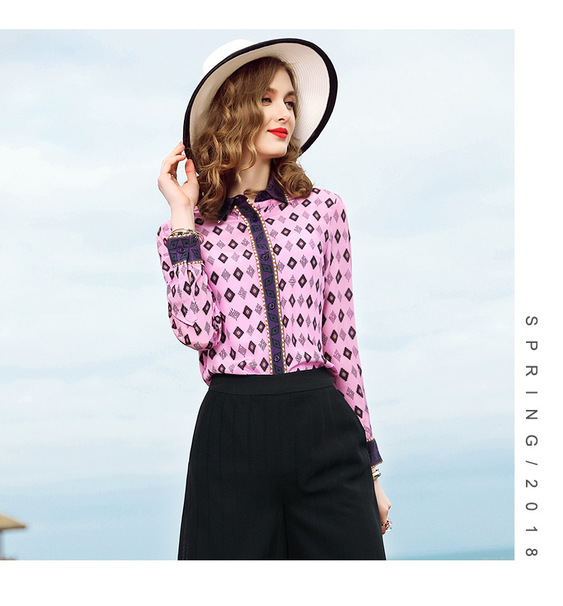YNM-L12HT1343春季新款时尚轻熟仿真丝长袖衬衫