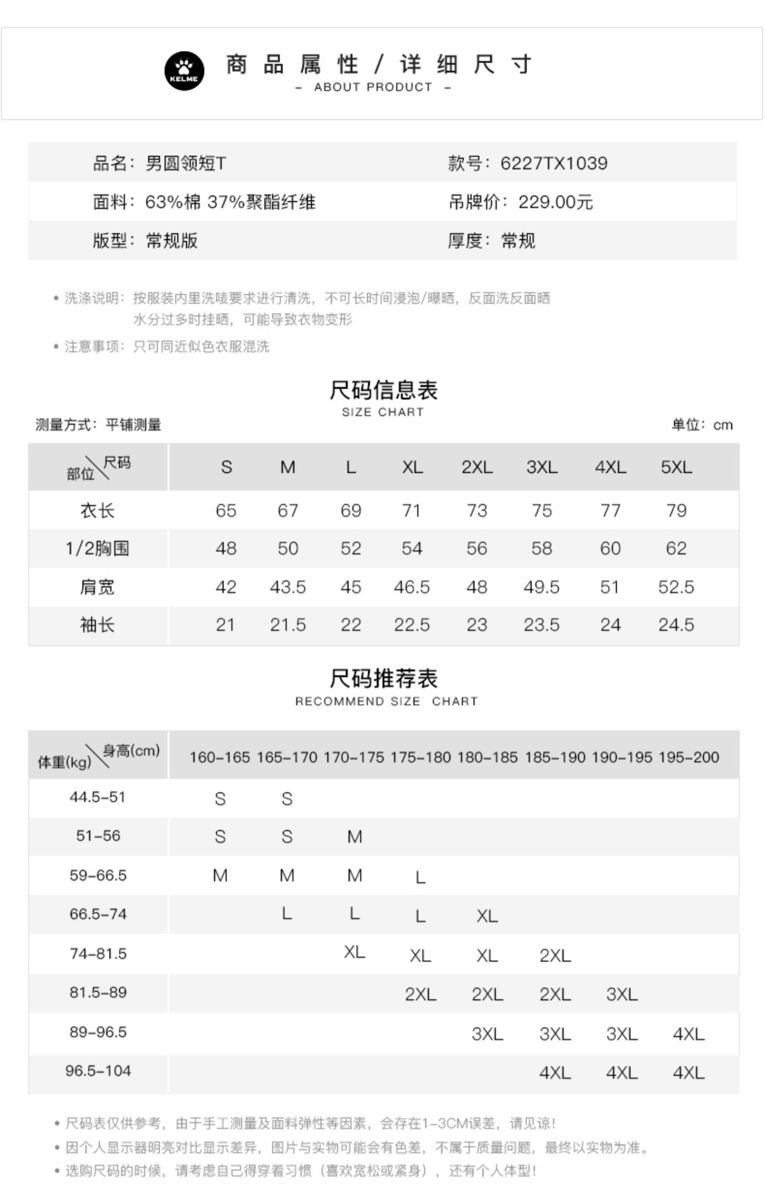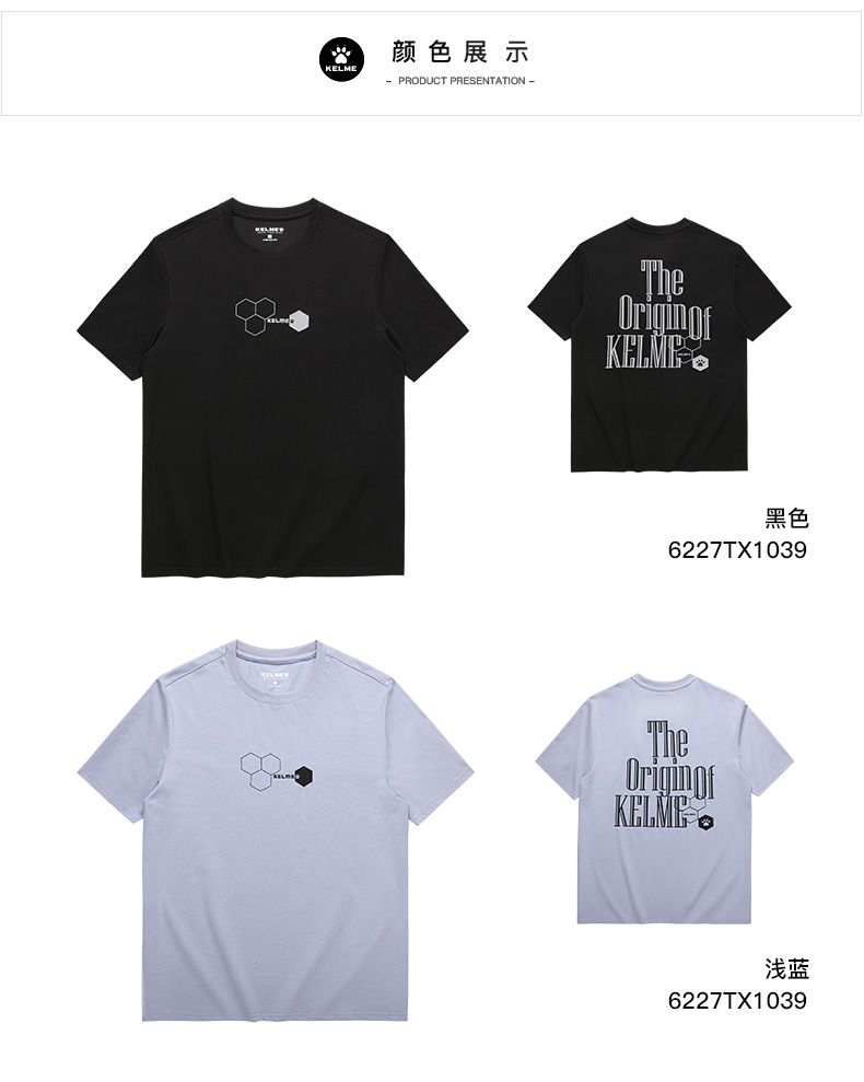 卡尔美短袖T恤男款新款夏季休闲装透气圆领时装简约生活体恤
