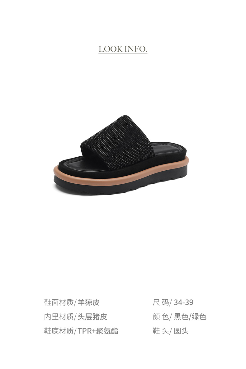 舒适百搭,厚底水钻凉拖鞋TYM-6176