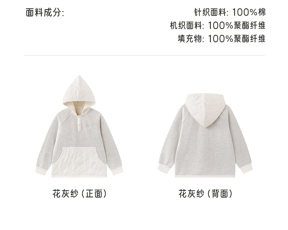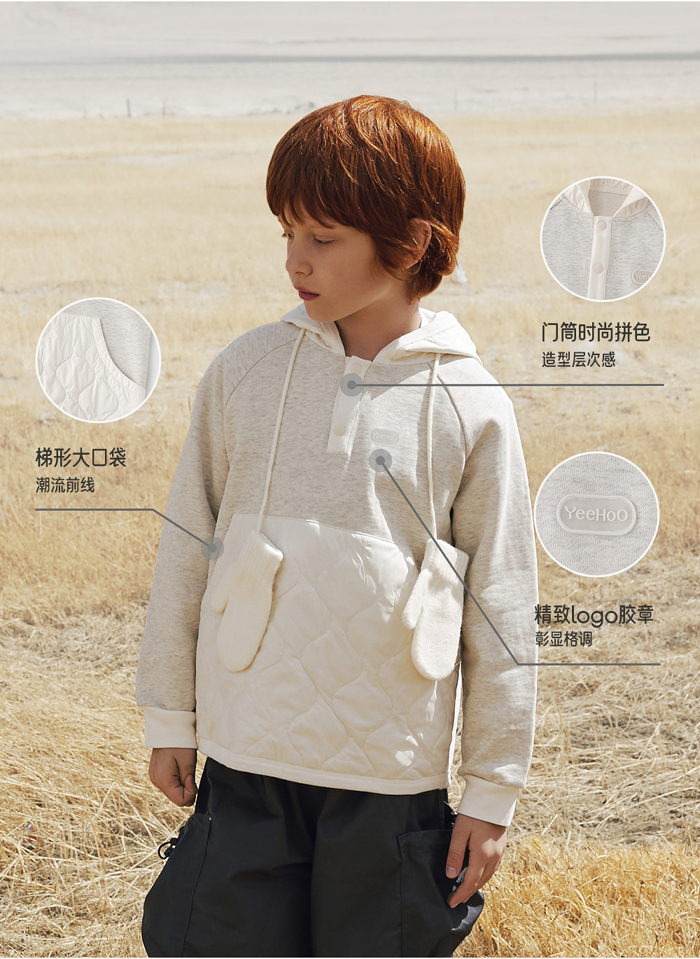 英氏儿童卫衣连帽抗菌抓毛冬季男童保暖防风舒适防寒绒衫休闲百搭