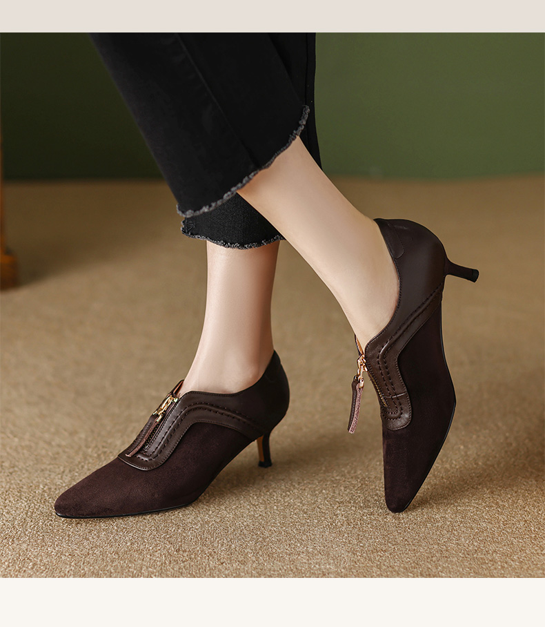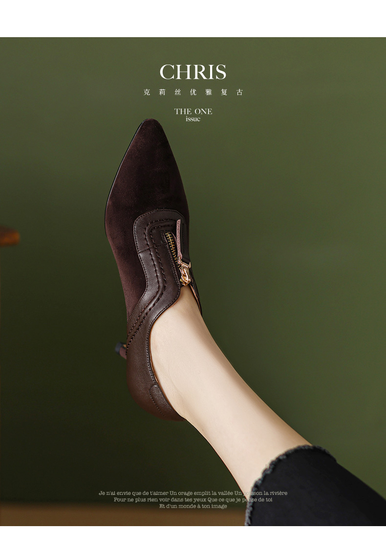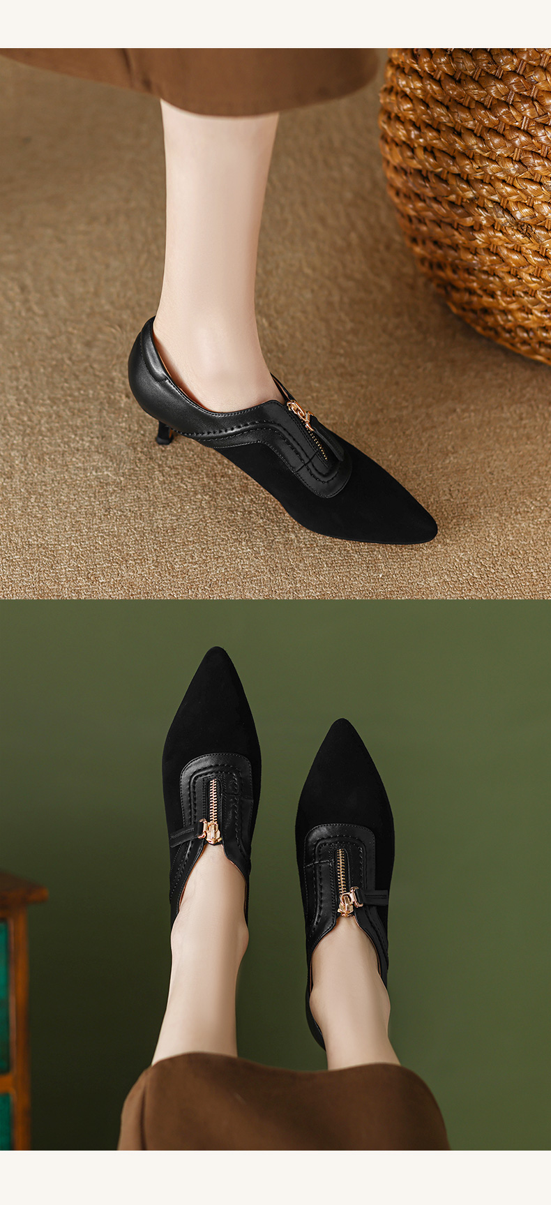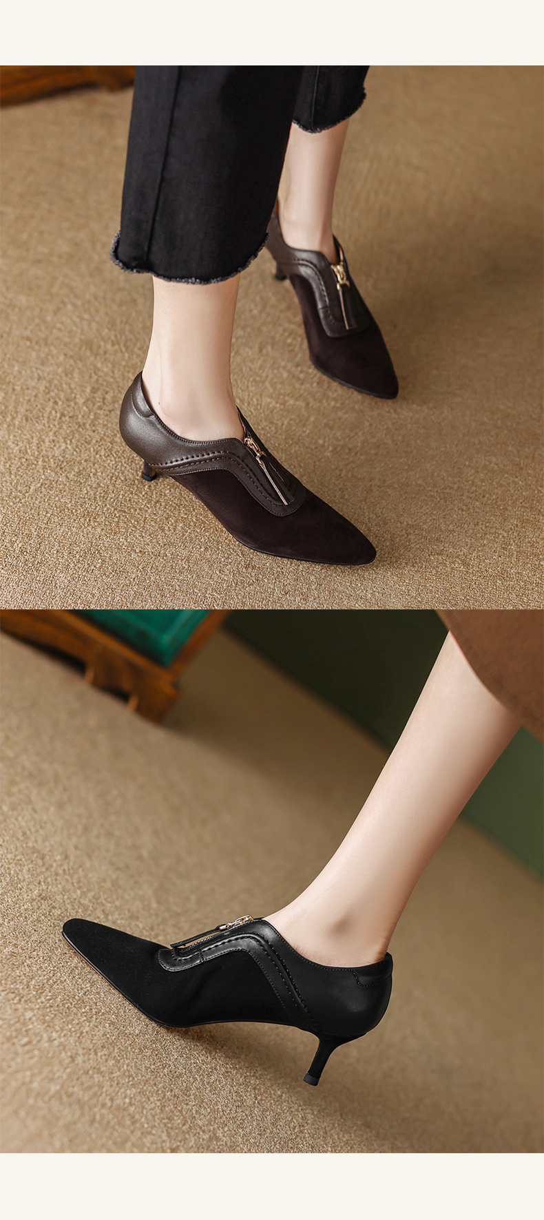 优雅百搭,尖头真皮拼接高跟鞋SF-1056