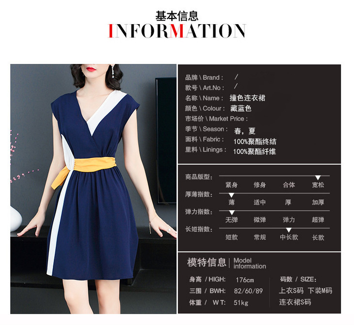 TJ-B-HSR3383V领撞色拼接仿真丝雪纺连衣裙