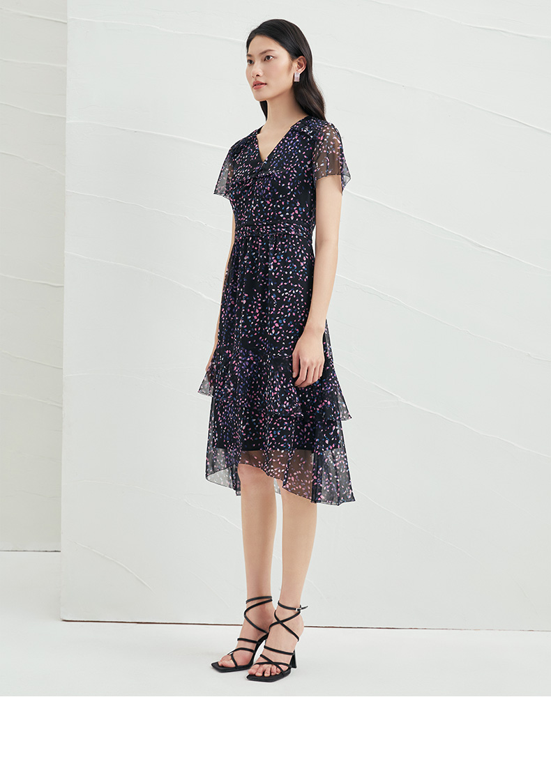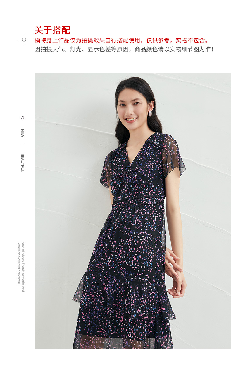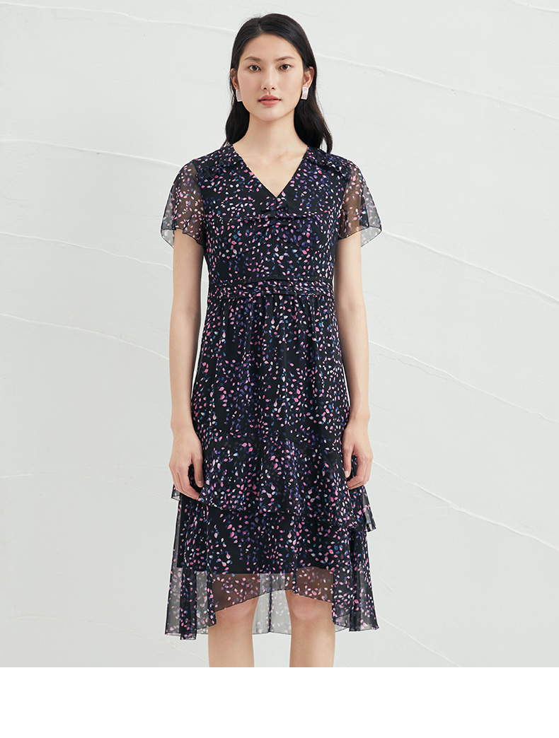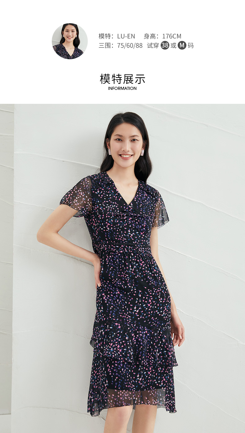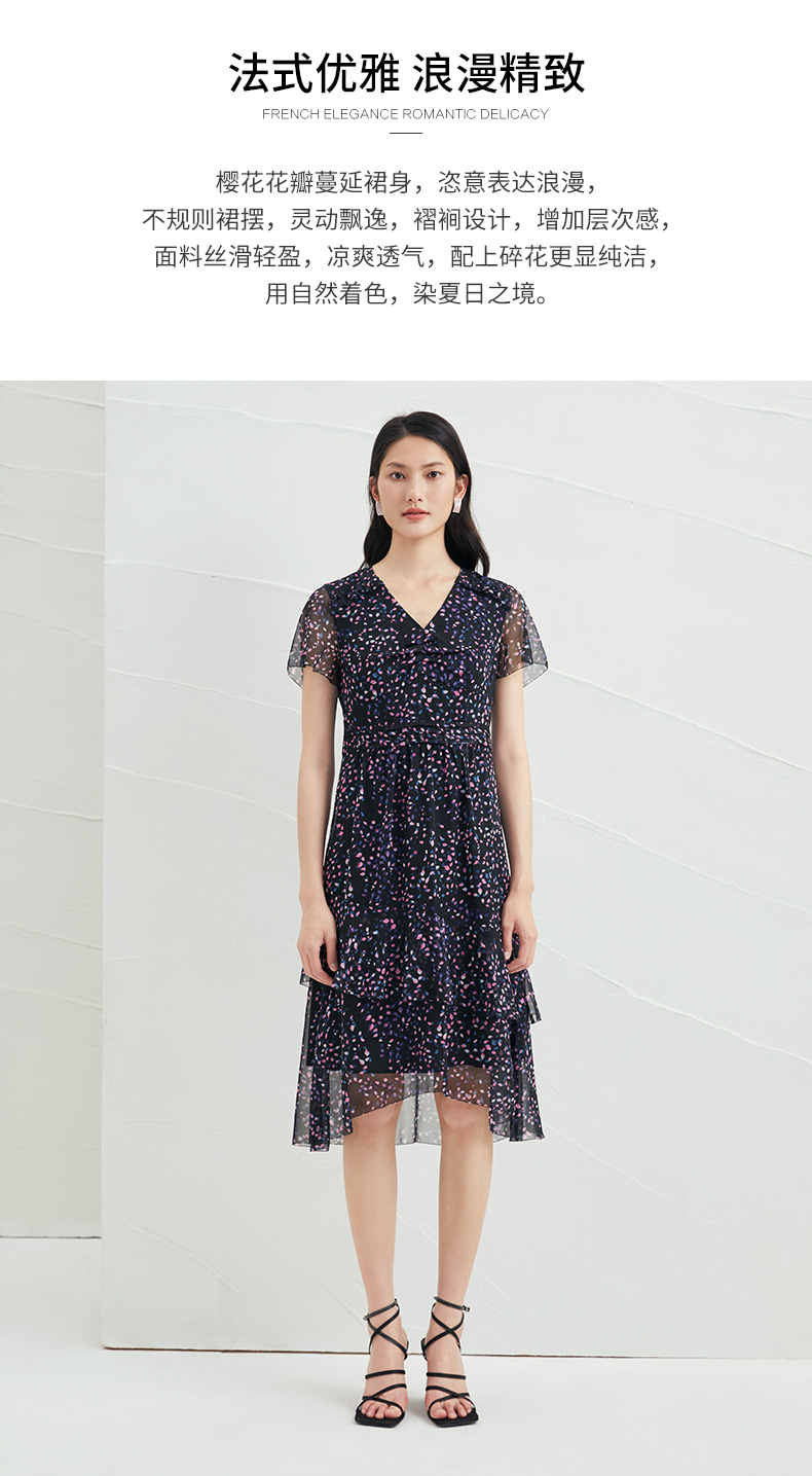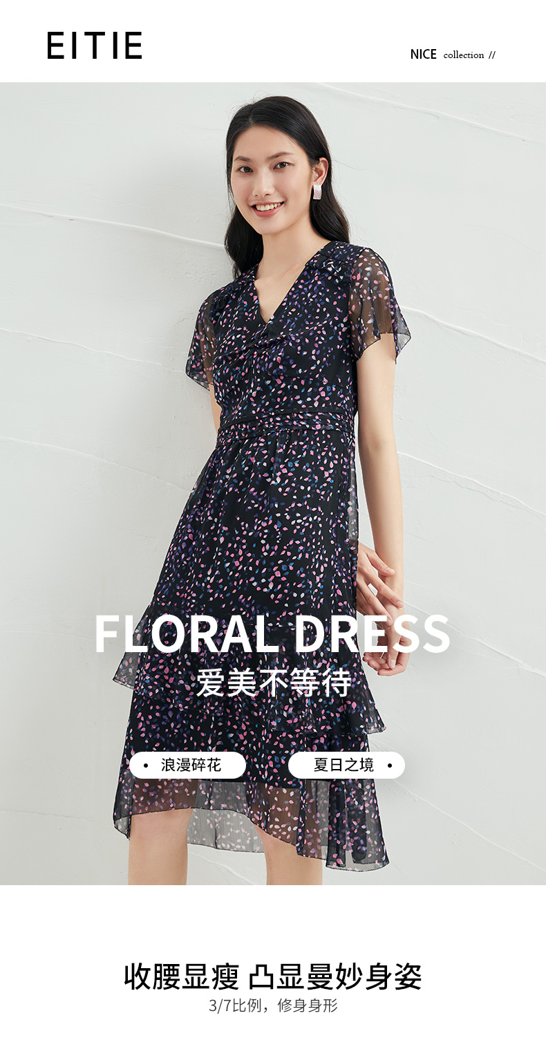 EITIE爱特爱春季新款翻领绣花A字连衣裙中长款女A2007421