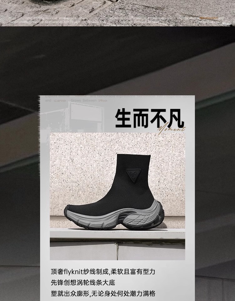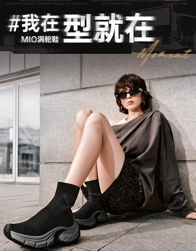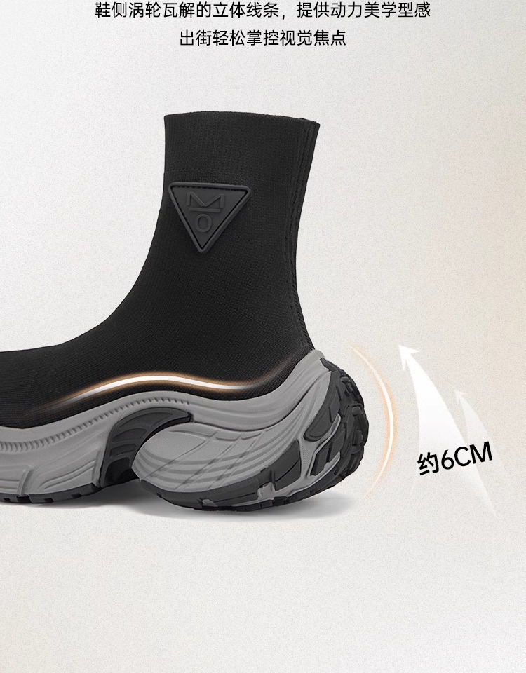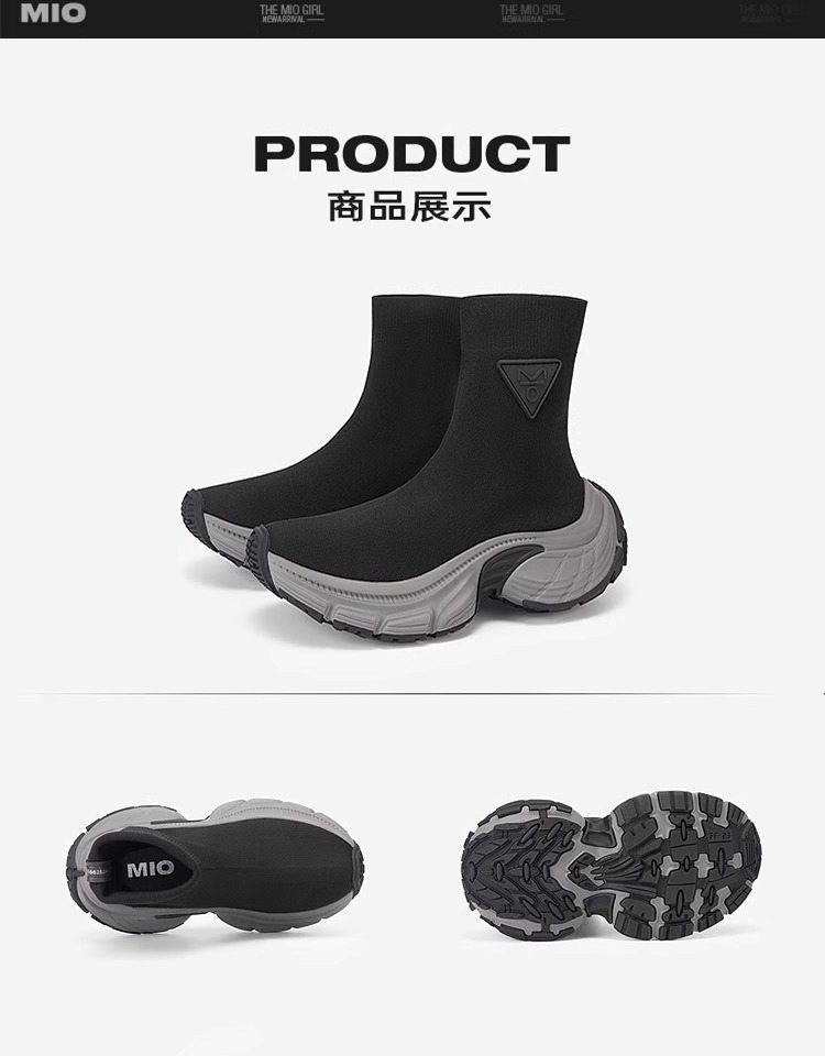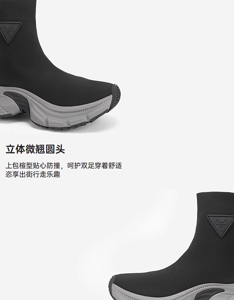 MIO米奥2024年冬季瘦瘦靴中筒靴潮流厚底运动靴酷飒袜靴弹力靴女