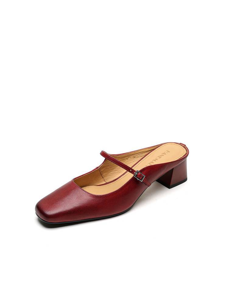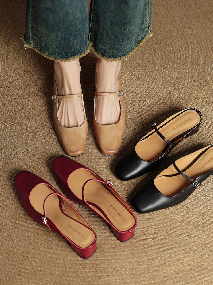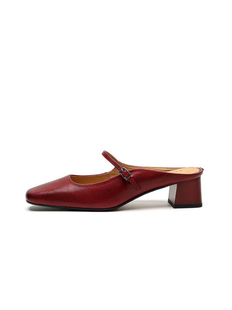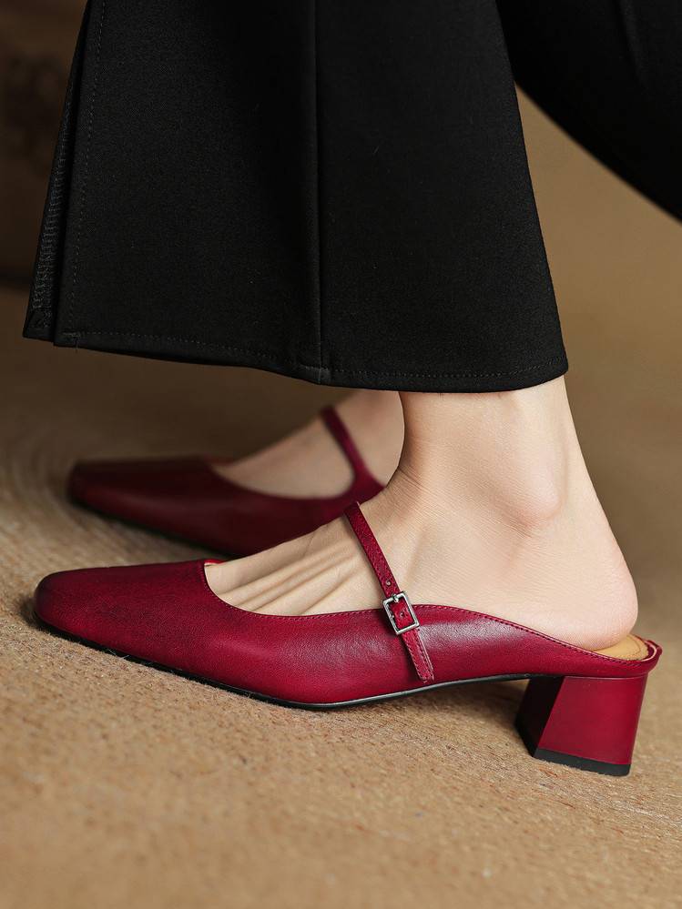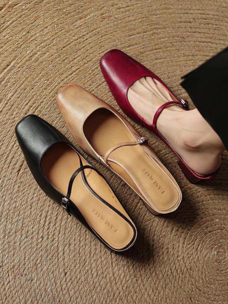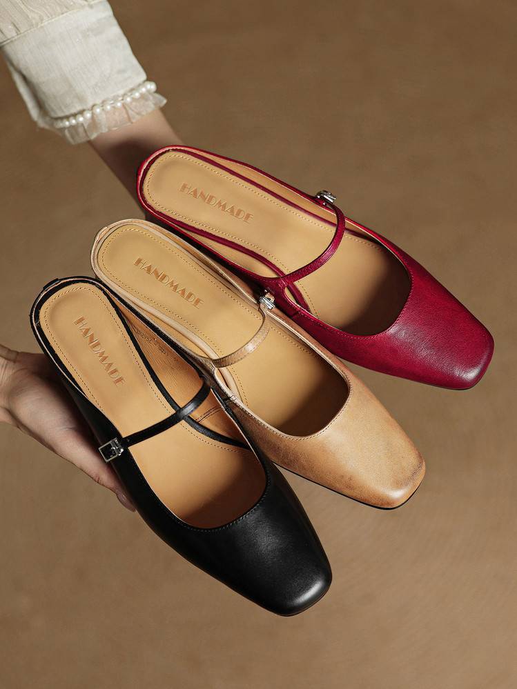 【预售5天】巨软好穿真皮复古中粗跟包头半拖鞋女夏新款外穿方头一字带凉拖和HB&0051-1