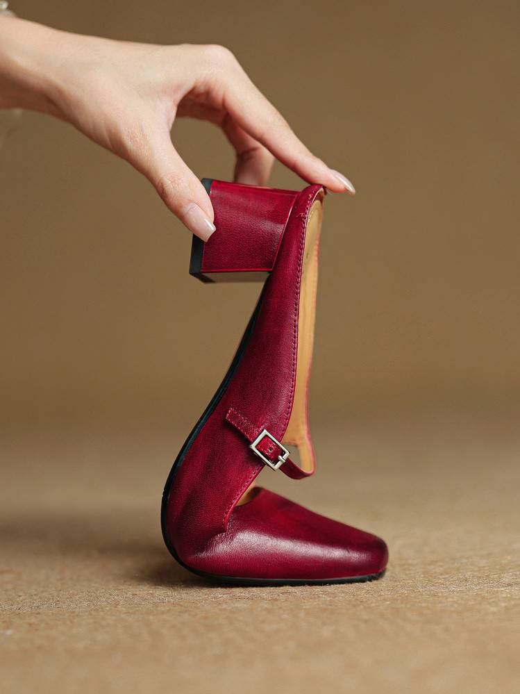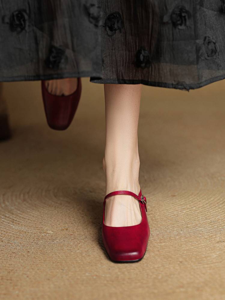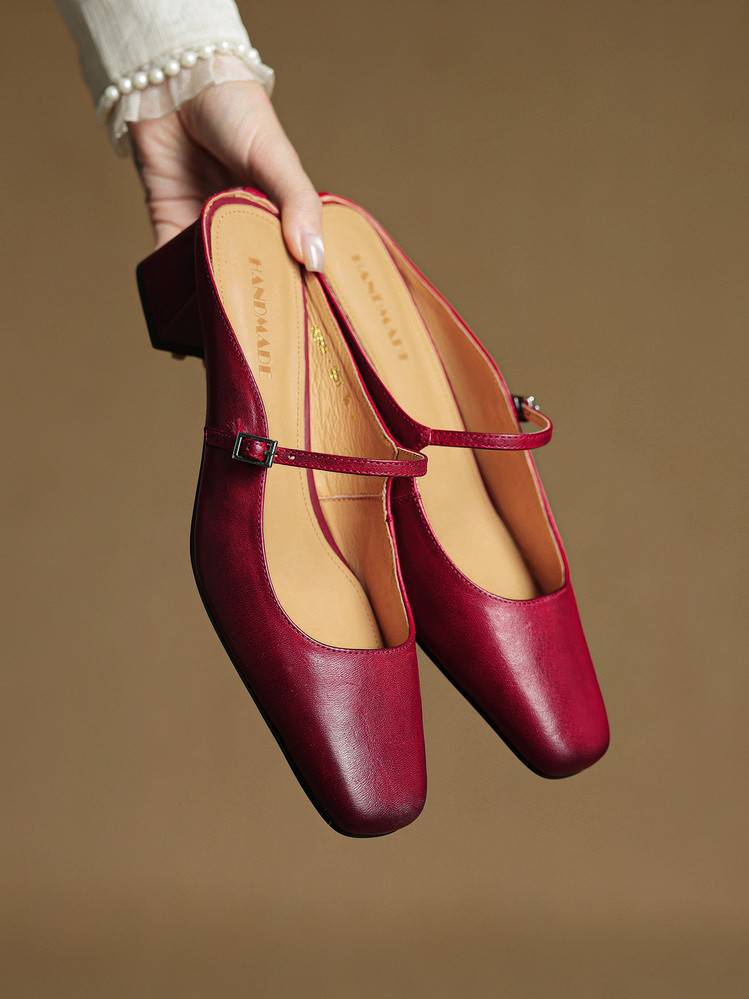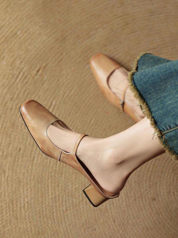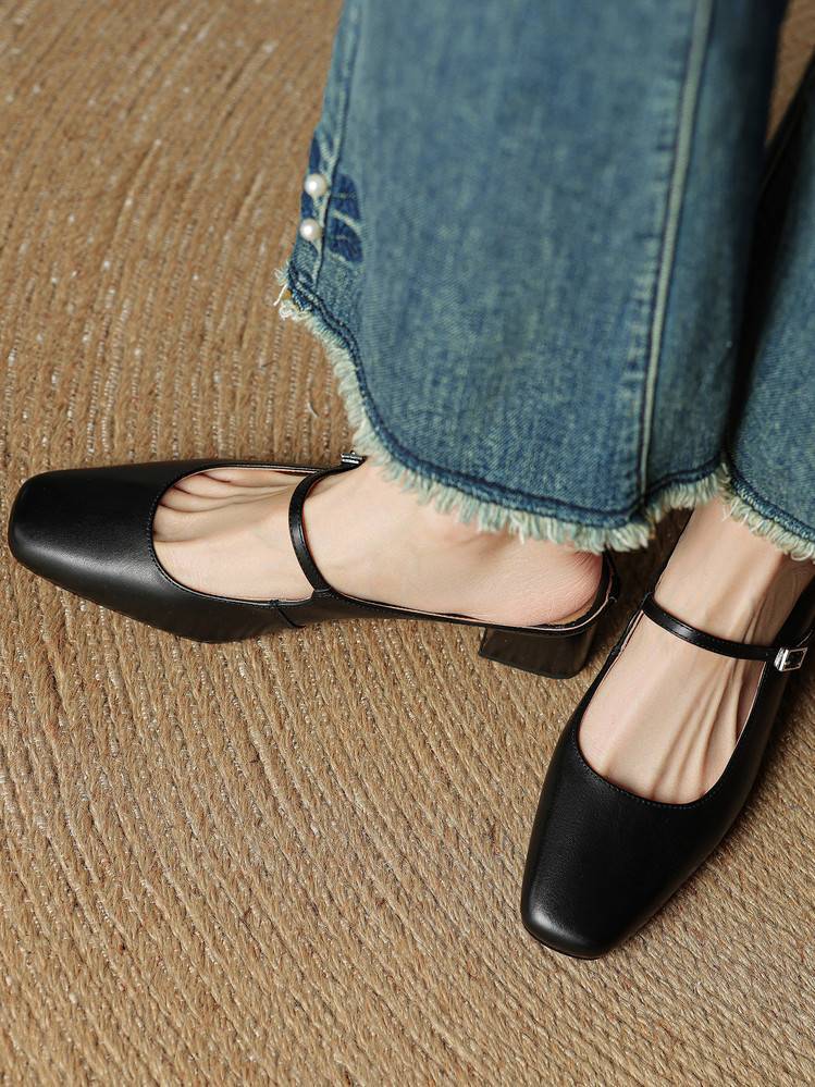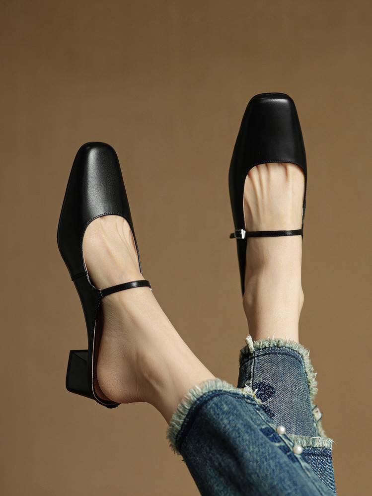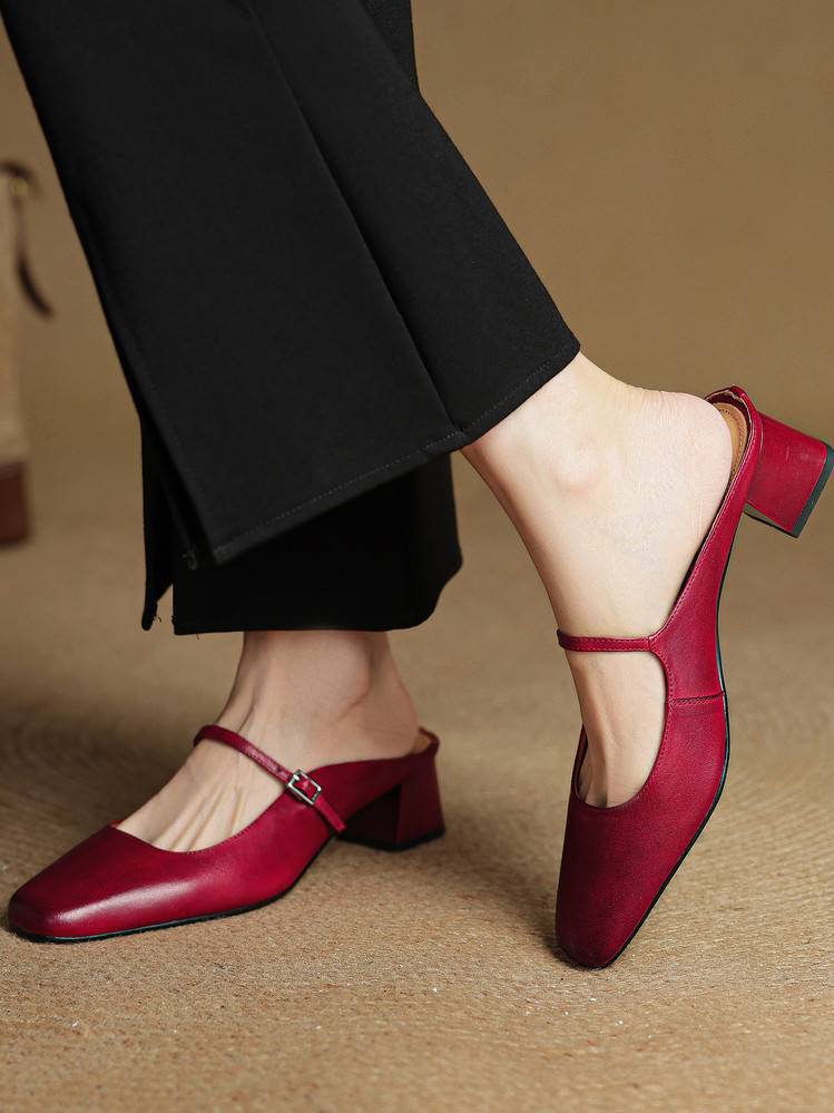 【预售5天】巨软好穿真皮复古中粗跟包头半拖鞋女夏新款外穿方头一字带凉拖和HB&0051-1