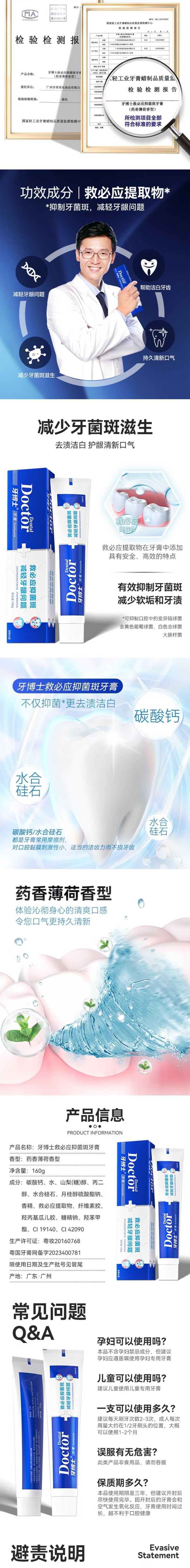 牙博士 救必应抑菌斑牙膏160g 6924431415865
