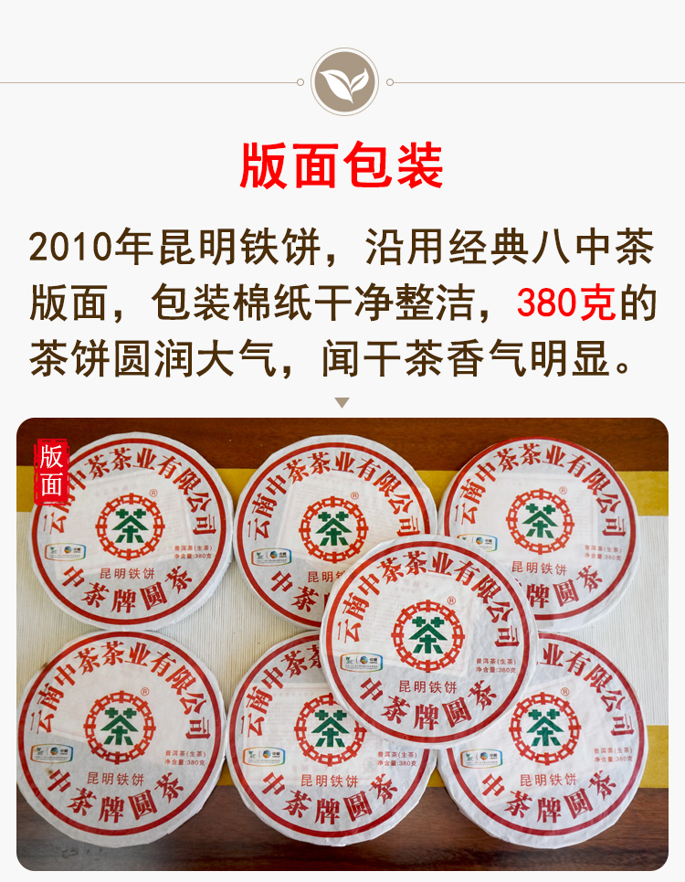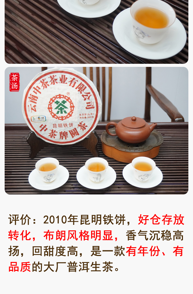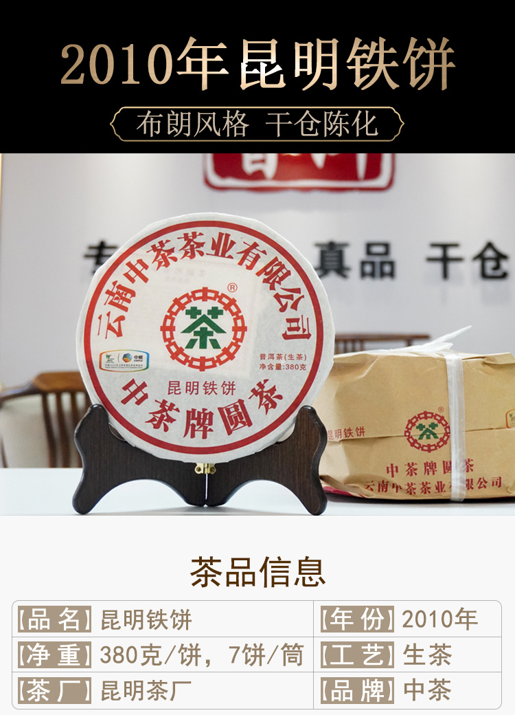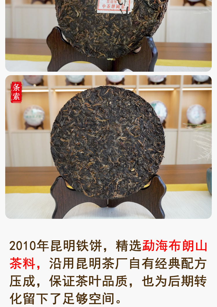 2010年昆明茶厂昆明铁饼普洱生茶经典 一片380克干仓真品经典昆铁 高性价比好仓储很香 好撬
