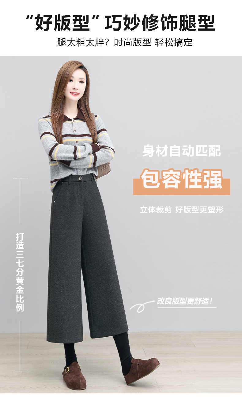 YM 2816毛呢阔腿裤加厚靴裤九分裤 商品图4