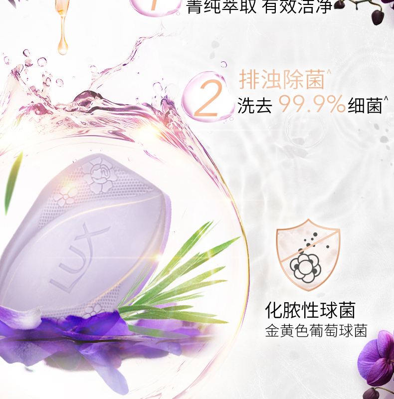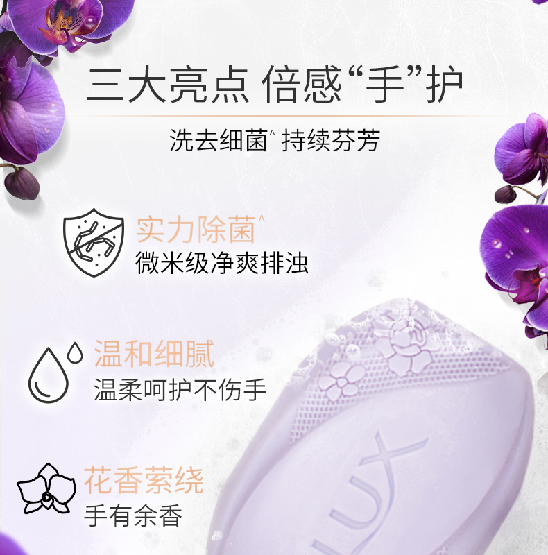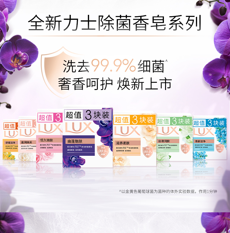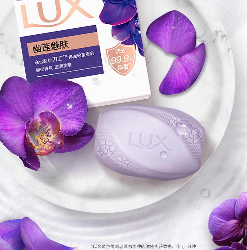 【力士(LUX)】幽莲魅肤 排浊除菌 香皂115克三块装*3盒 (香型随机)