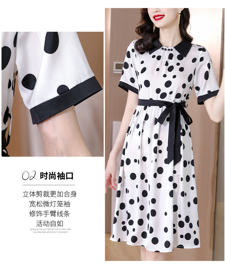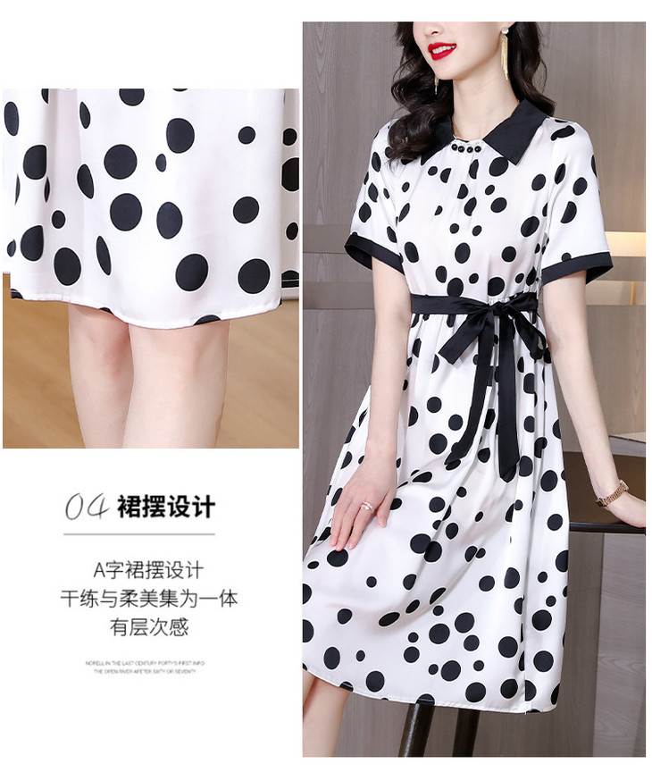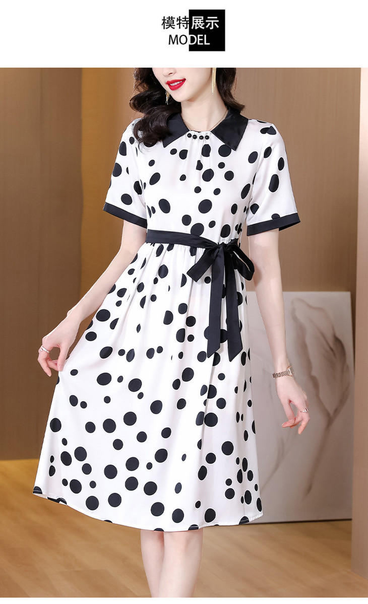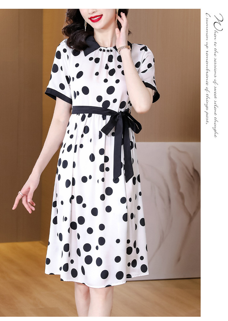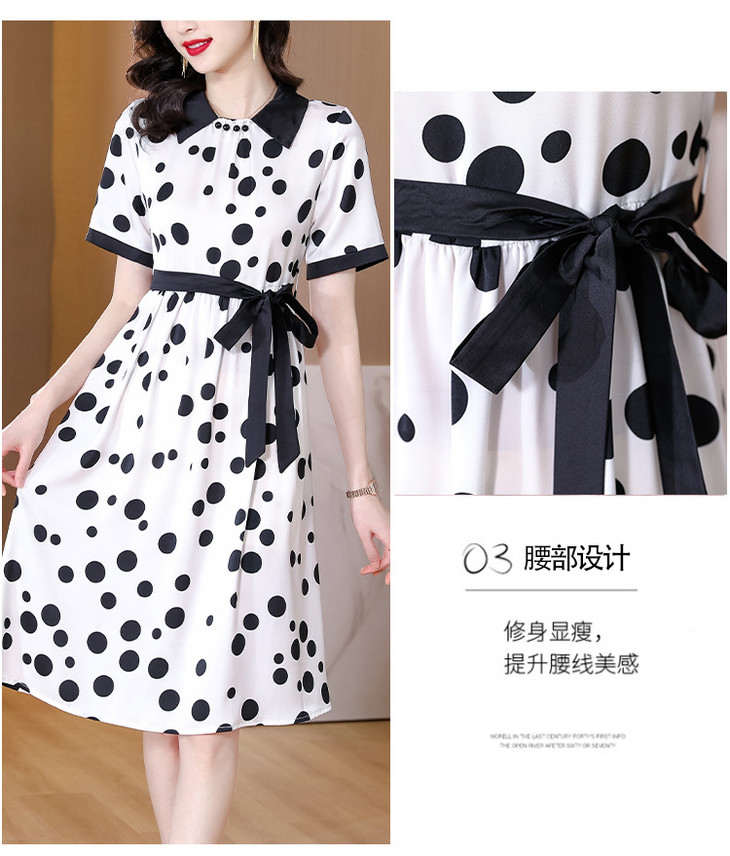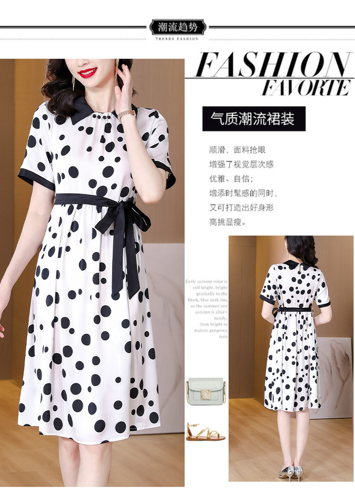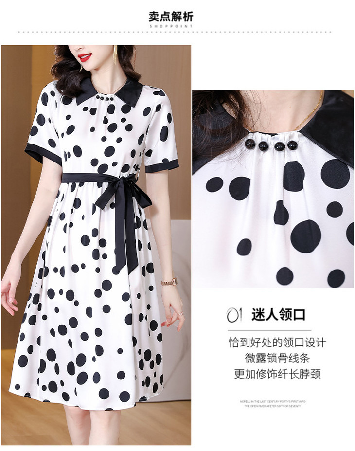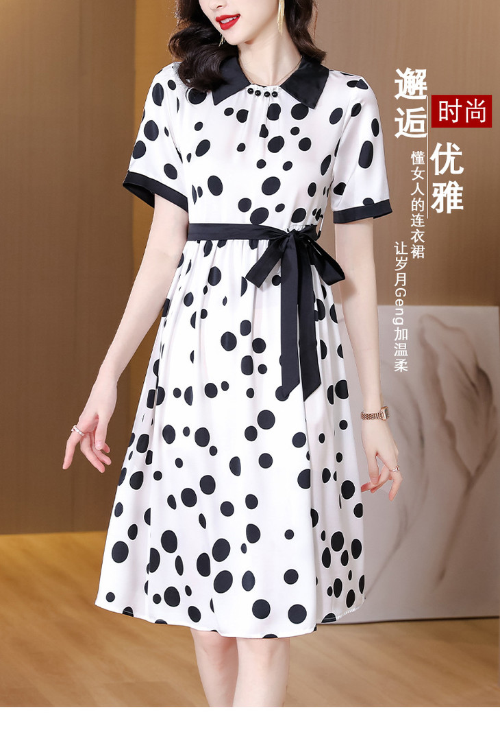 AHM-hmnz6075夏季新款时尚洋气短袖波点撞色系带重磅醋酸缎面连衣裙