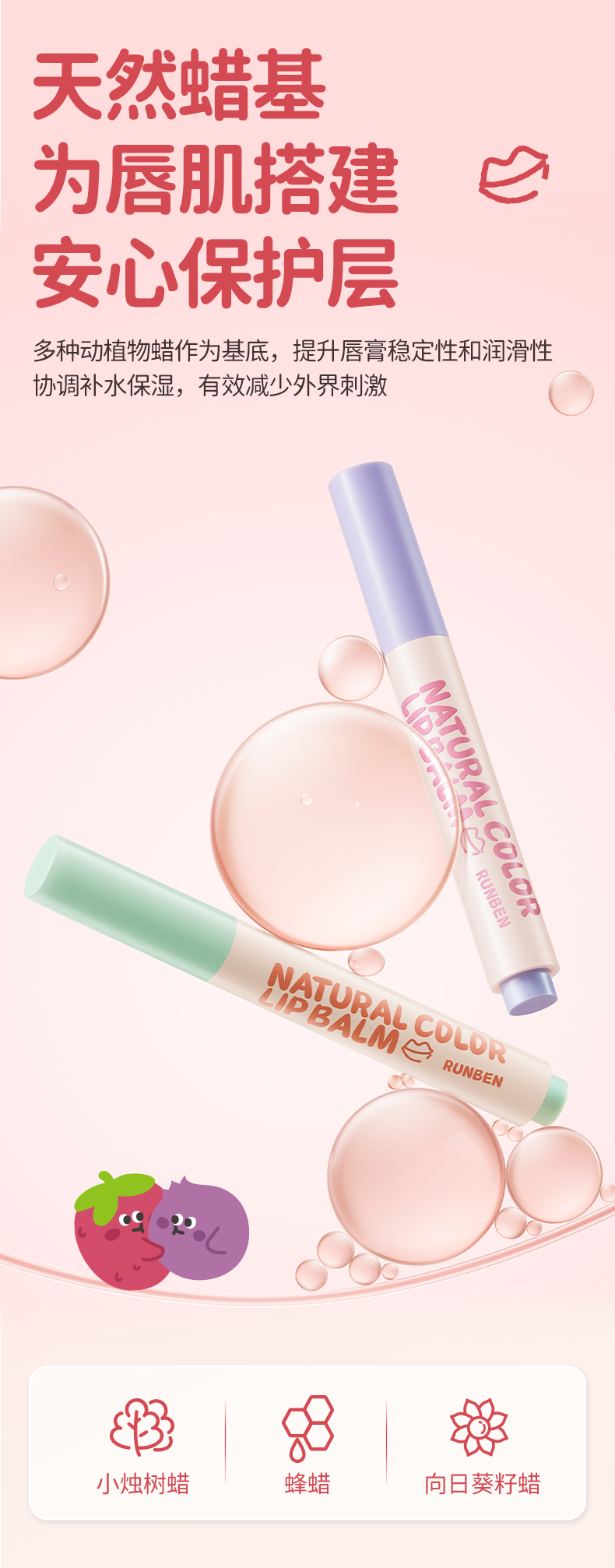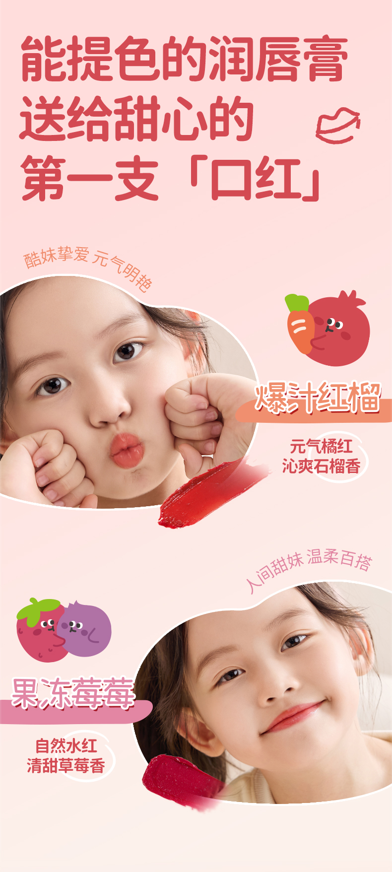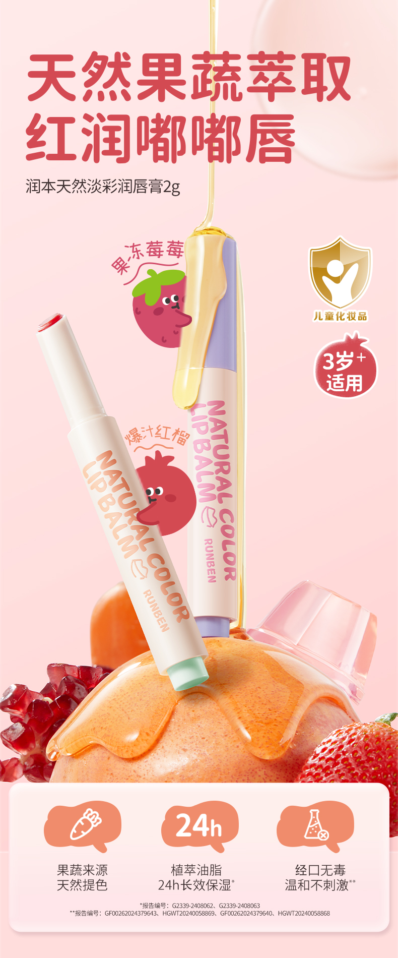 润本天然淡彩润唇膏 小公主的第一支口红 儿童口红 润唇膏 小女孩专用秋冬保湿滋润防干裂宝宝护唇膏提色