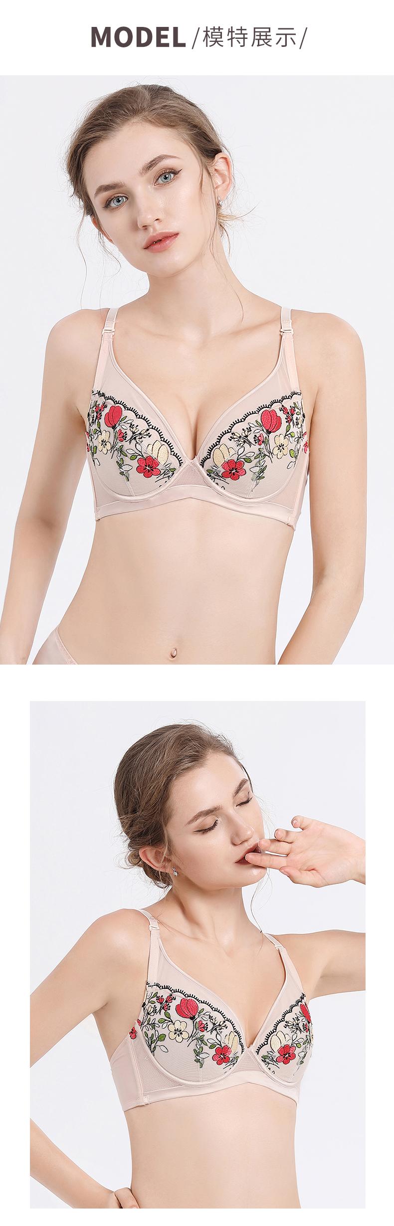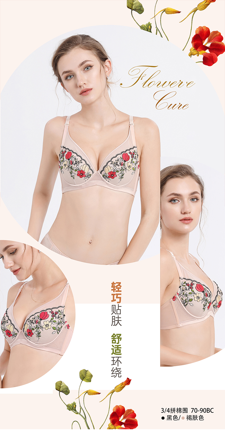 贝佳人新品3/4薄杯轻薄透气文胸刺绣内衣女软钢圈聚拢上托BW922050