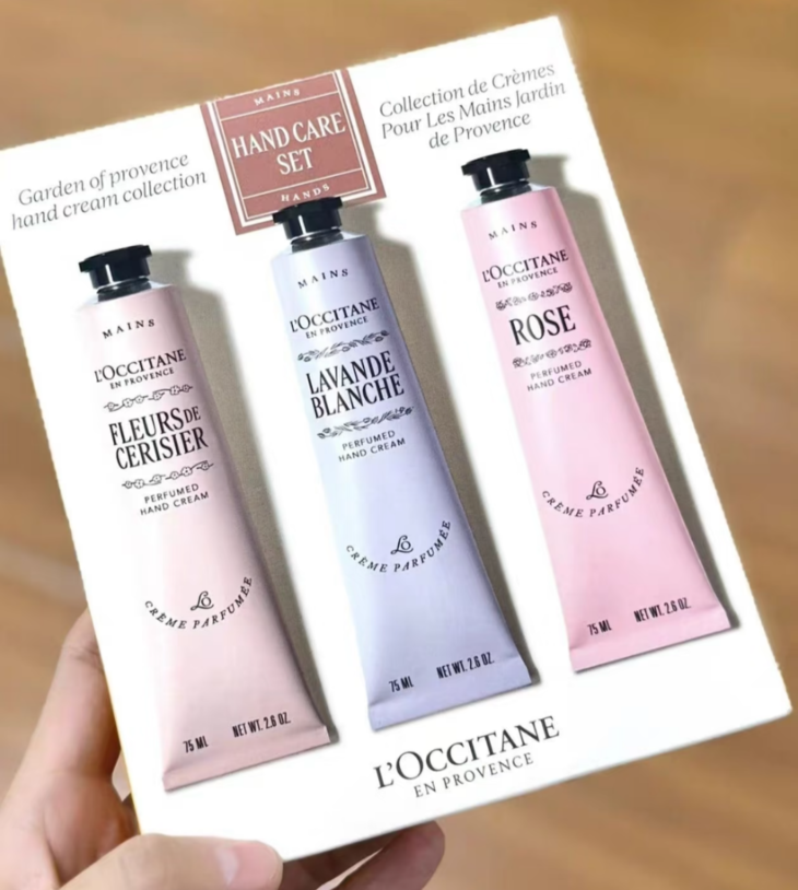 👑欧舒丹护手霜三支装 75ml*3(樱花+薰衣草+玫瑰) 👍一次集合三大经典畅销香型,满足不同喜好与场合 🎁包装简约优雅,花香主题超有氛围感,送礼自用都很合适🎁 🌸樱花:清新甜美香气,乳液质地,少女感十足,甜而不腻 🌿薰衣草:舒缓草本香气,丝滑质地,放松助眠,宁静安心 🌹玫瑰:经典优雅香气,丰润保湿质地,女人味十足,历久不衰。