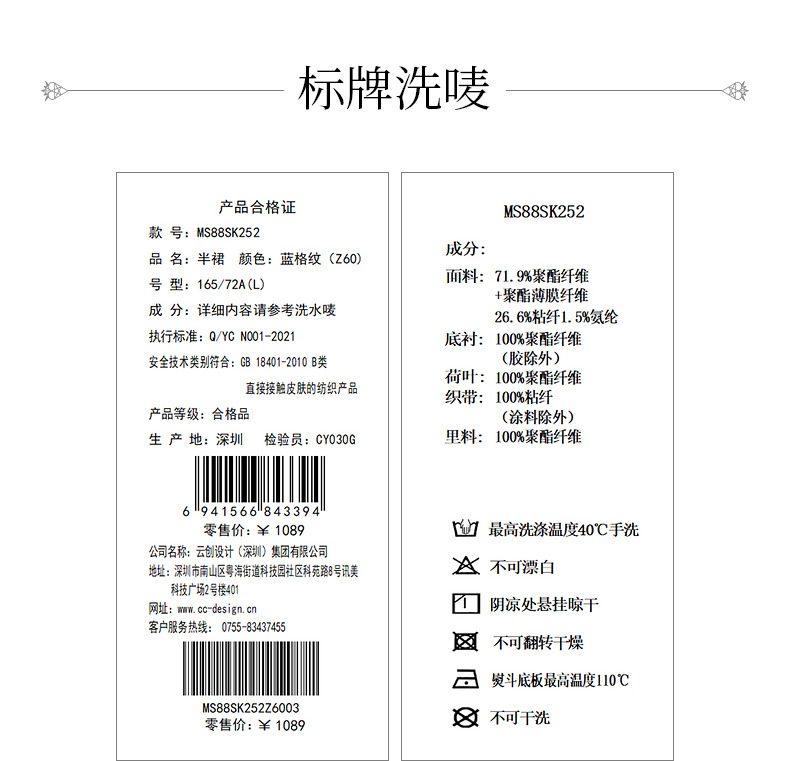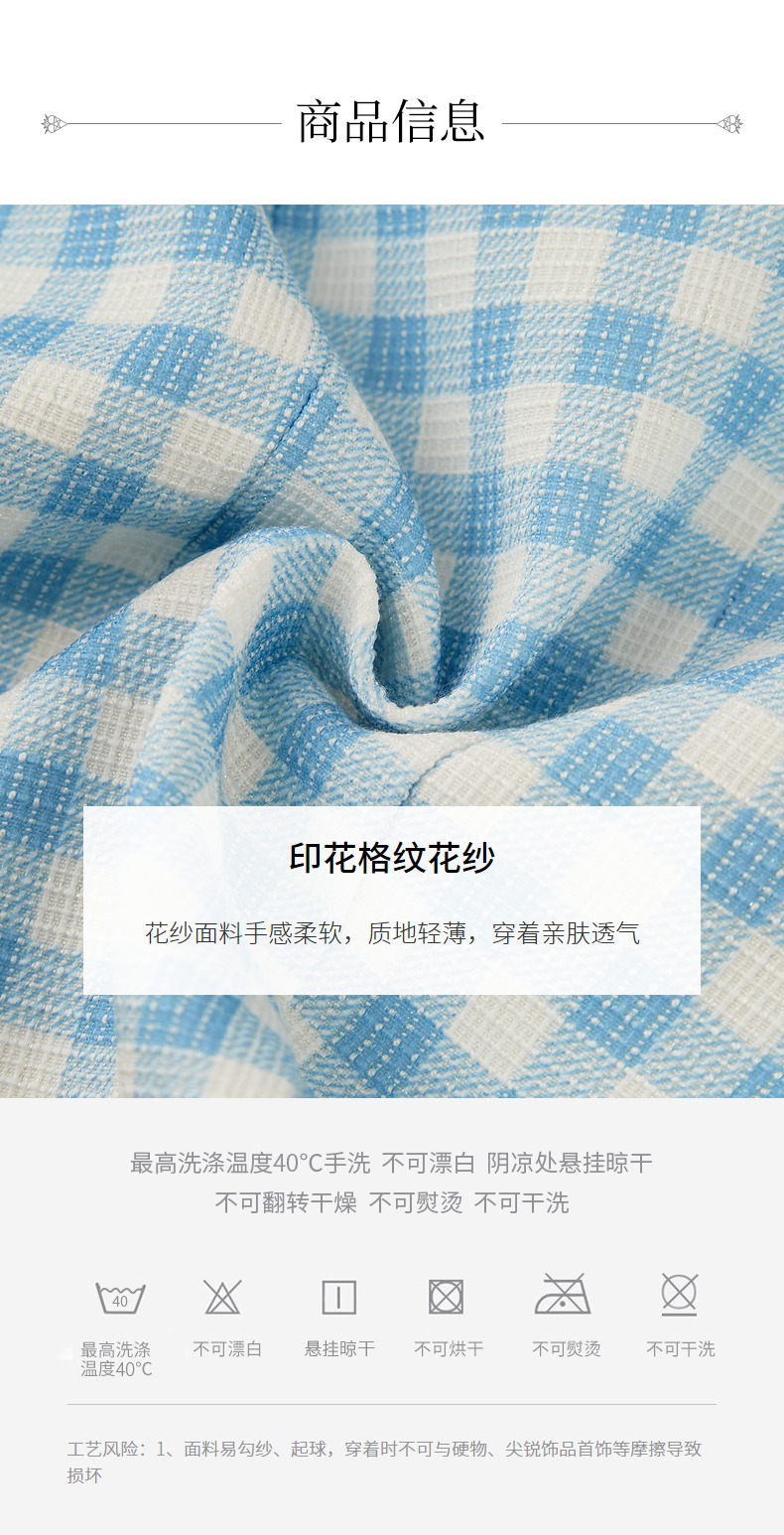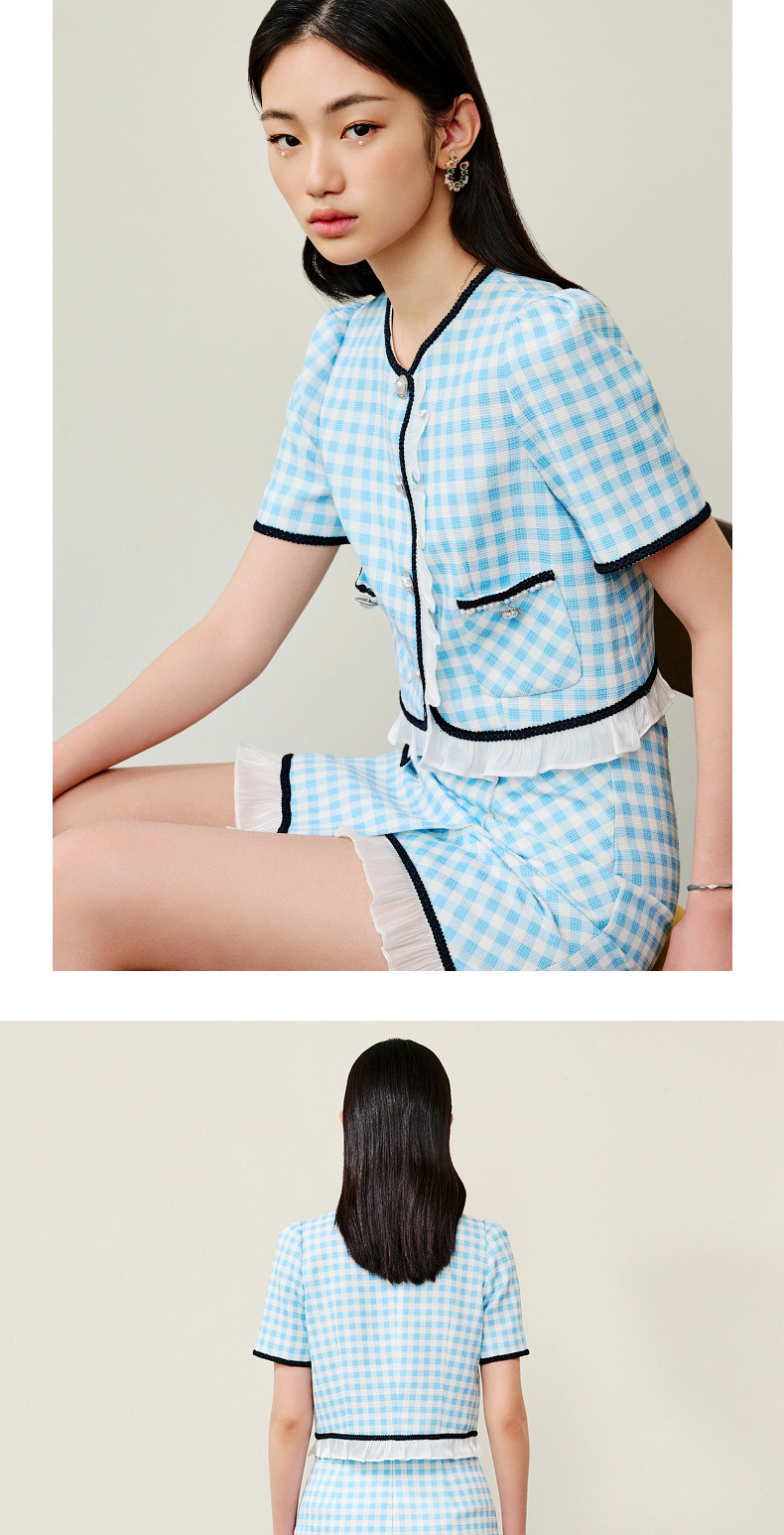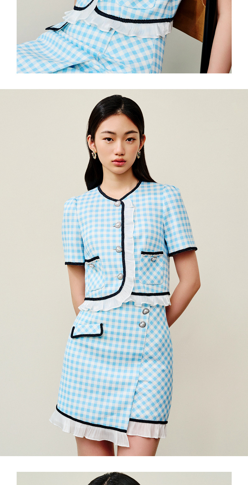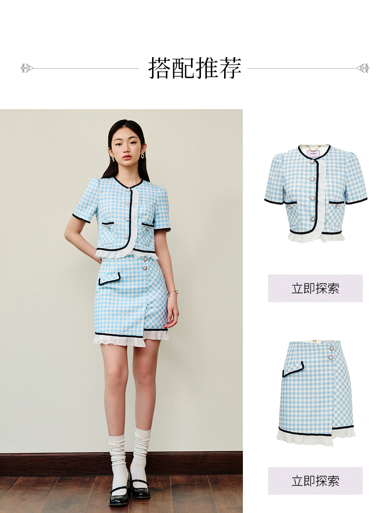 MAXRIENY蓝白格纹撞边千金小香风半裙不对称小裙子(货号:MS88SK252)