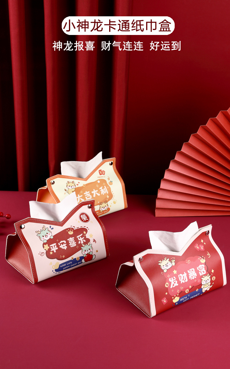 新年喜庆抽纸盒皮革纸巾袋单只装