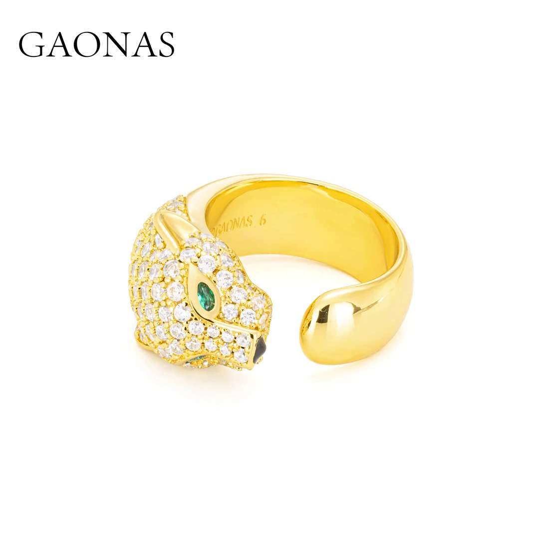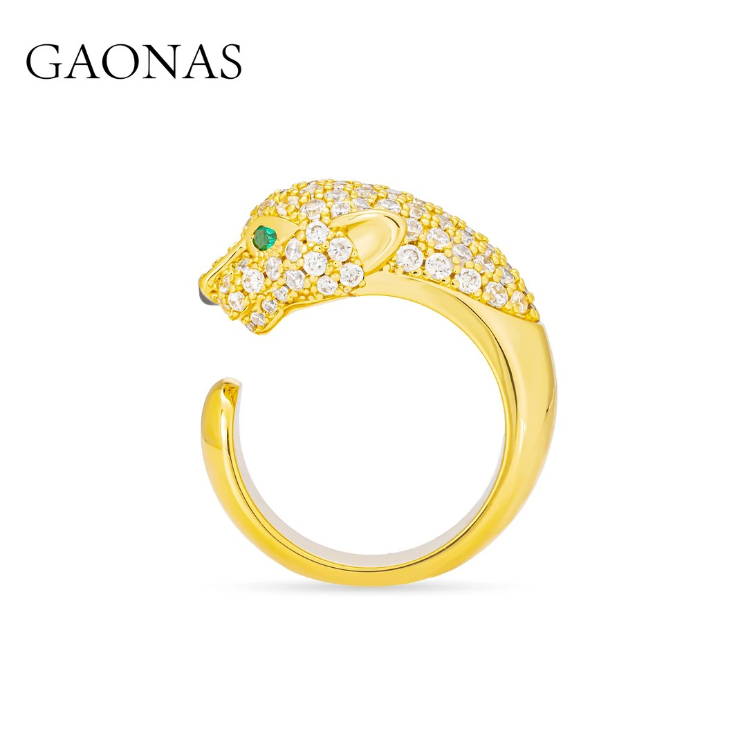 合成锆石戒指 金色豹子时尚潮流百搭开口戒指11941JGO