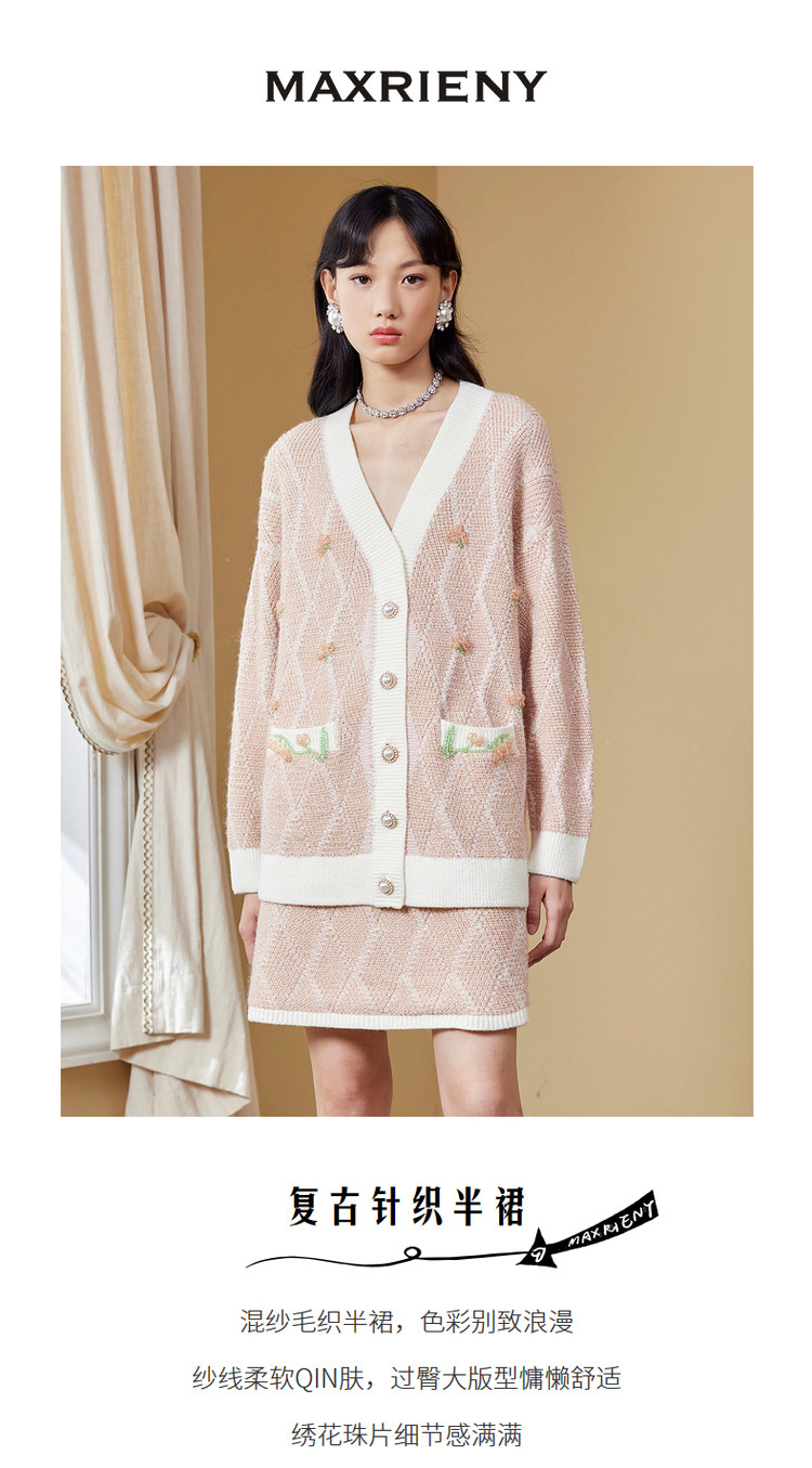 MAXRIENY复古针织半裙秋装高腰包臀半身裙MC87SK568Z10
