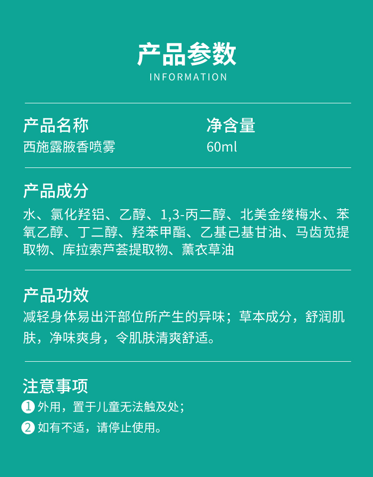 【新品升级】西施兰正品西施露腋香净味喷雾25ml止汗露清爽改善腋下异味