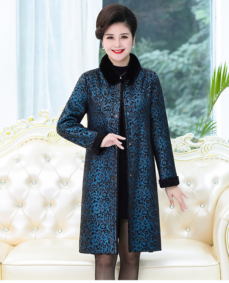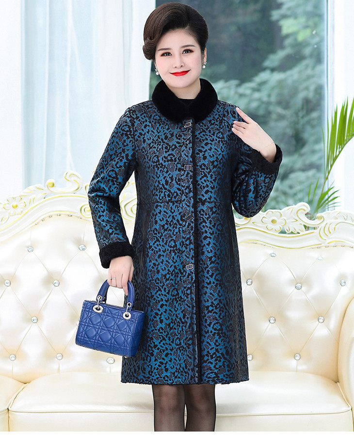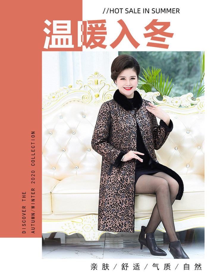 YCE-1943-立领小豹纹---冬季新款加绒加厚皮毛一体外套