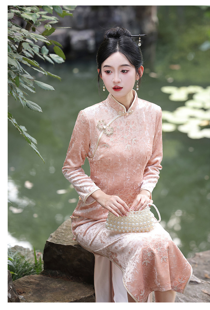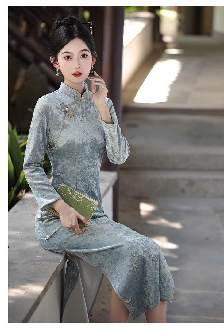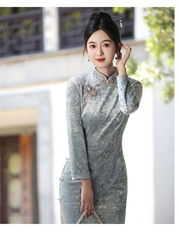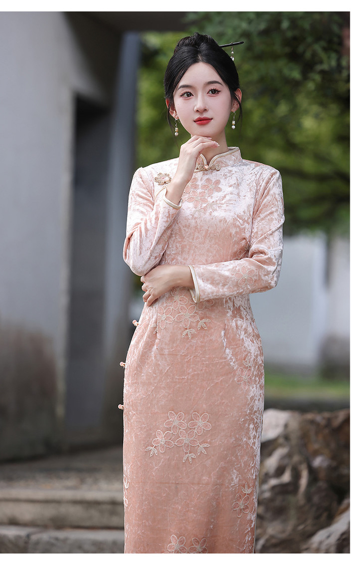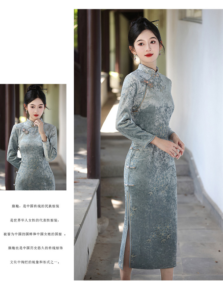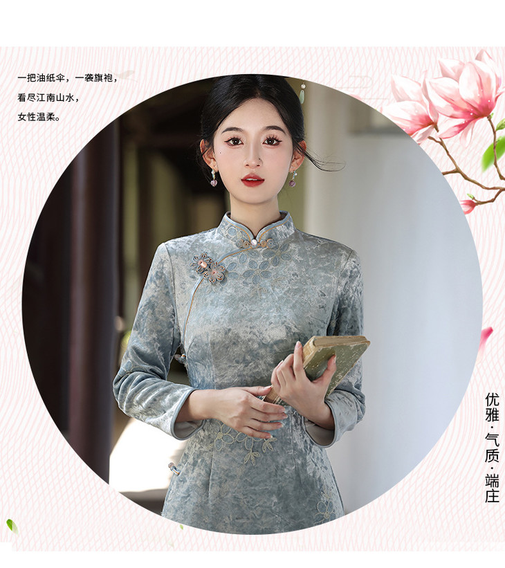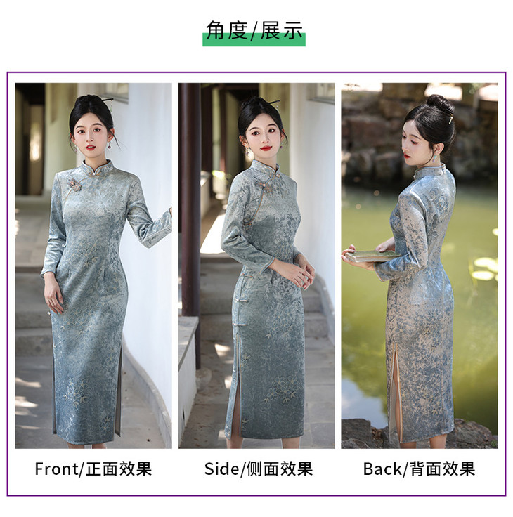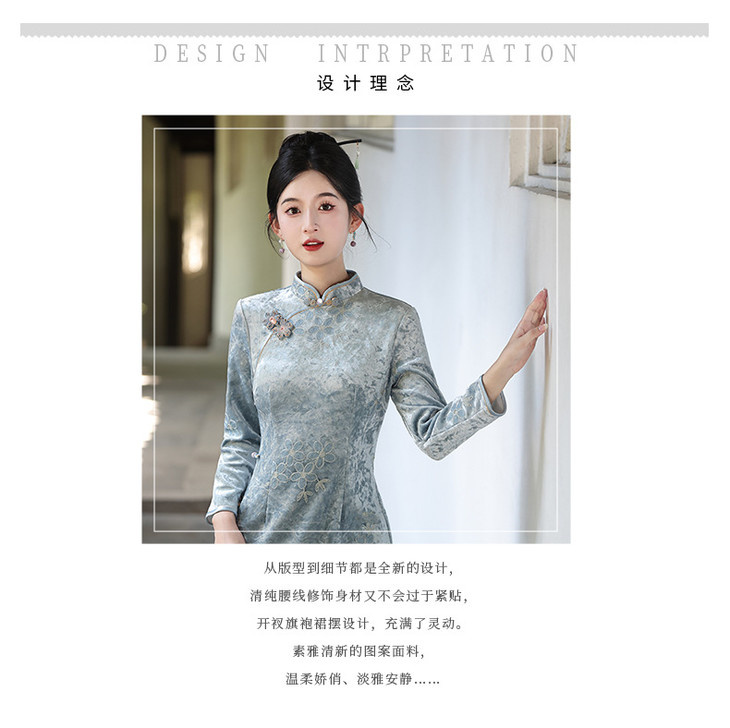 手工盘扣年轻款牛奶丝提花,显瘦长款立领新中式旗袍MLS7219