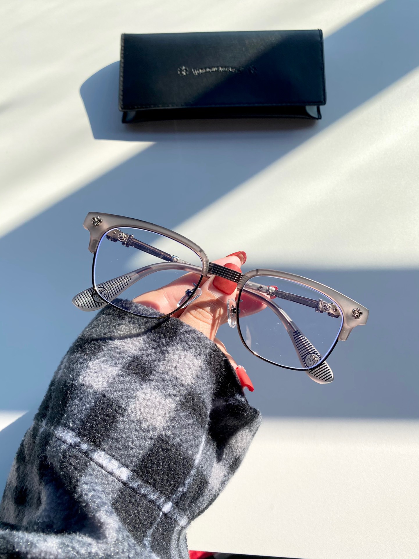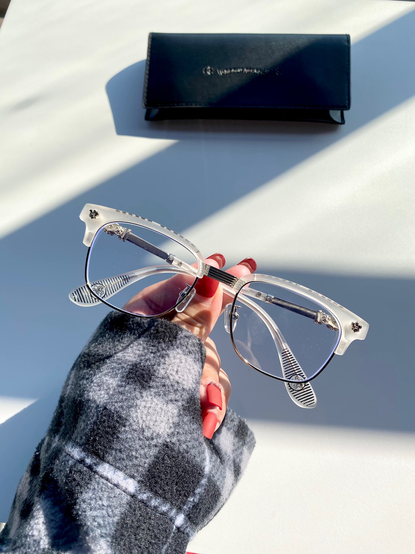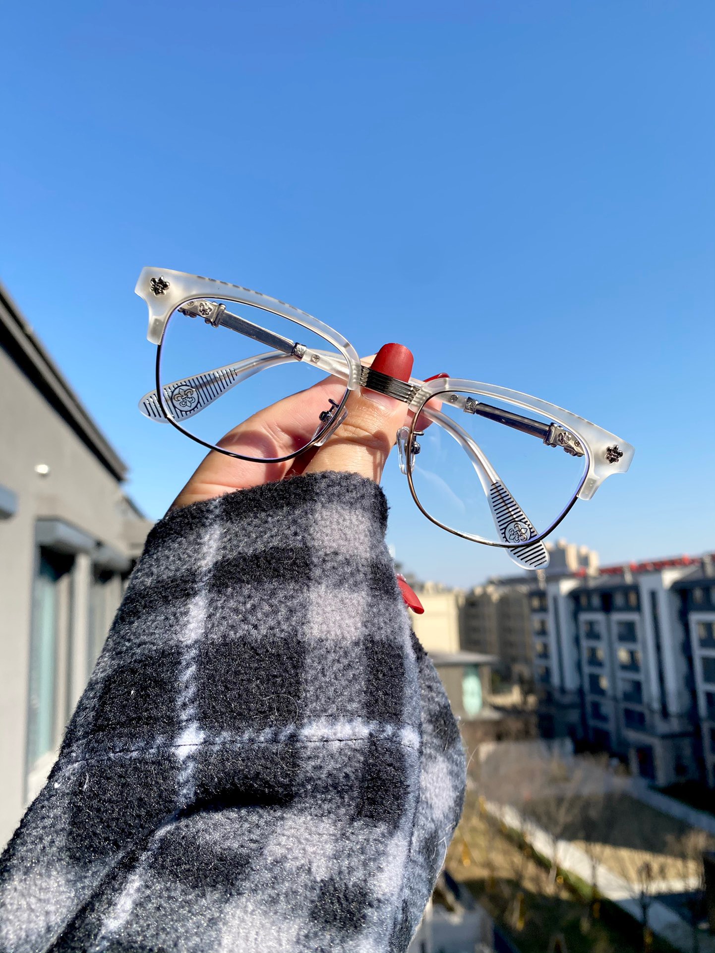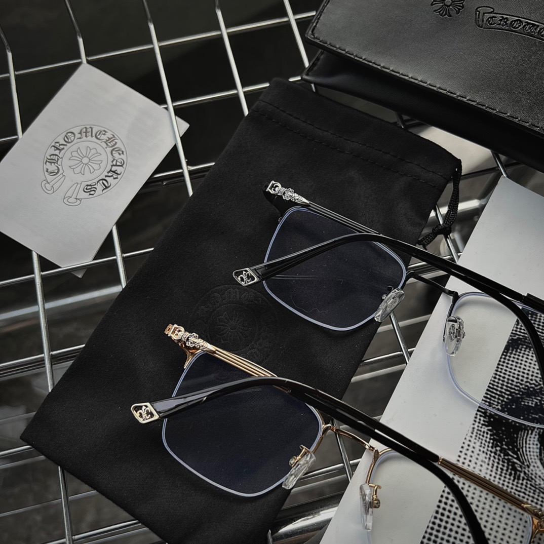 𝗖𝗵𝗿𝗼𝗺𝗲 𝗛𝗲𝗮𝗿𝘁𝘀 克罗心关晓彤 同款 平光镜 可配度数眼镜 近视镜架 纯钛镜架 配新花纹金属图腾,