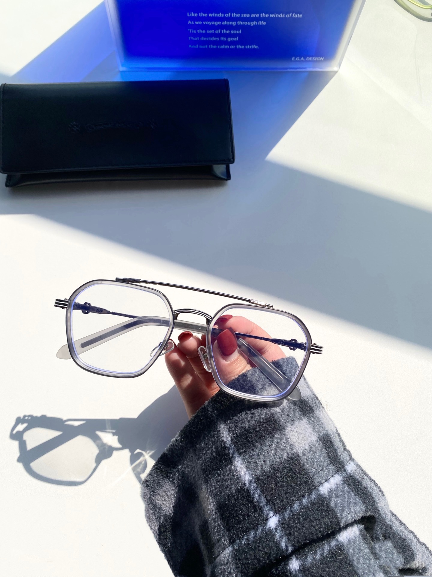 超轻纯钛,手工电镀logo,防蓝光十字花眼镜
