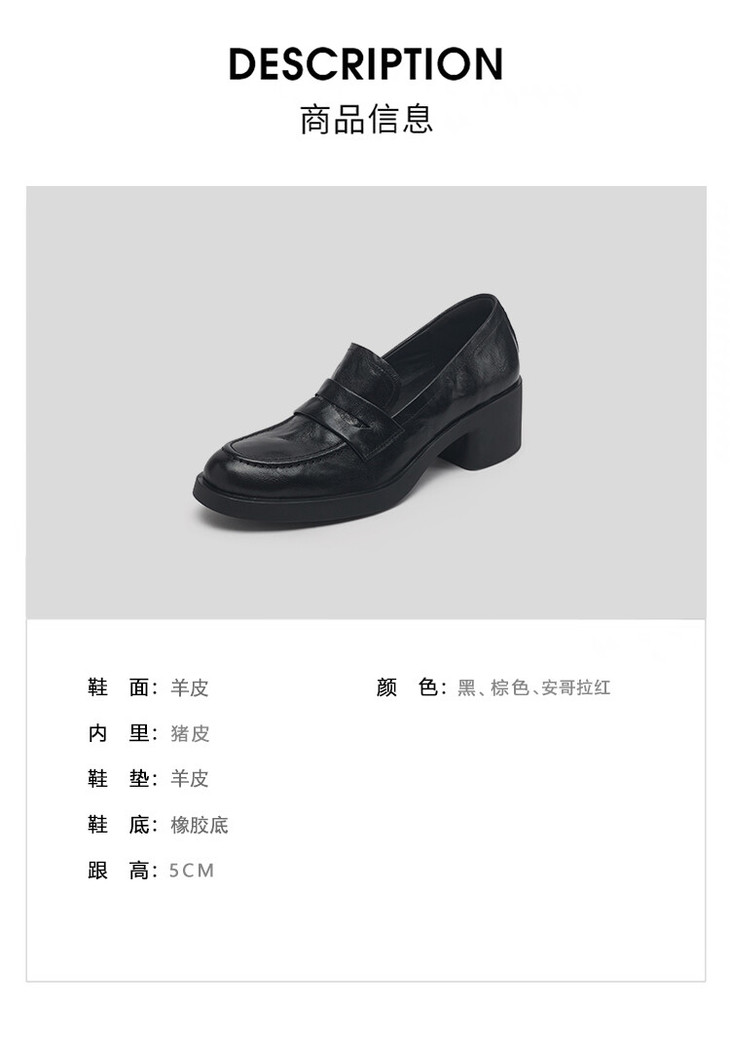 货号:b7291颜色:黑色 棕色 安哥拉红帮面材质:羊皮内里材质:猪皮垫脚材质:羊皮鞋底材质:橡胶底跟高:5.0cm掌宽:8.0cm