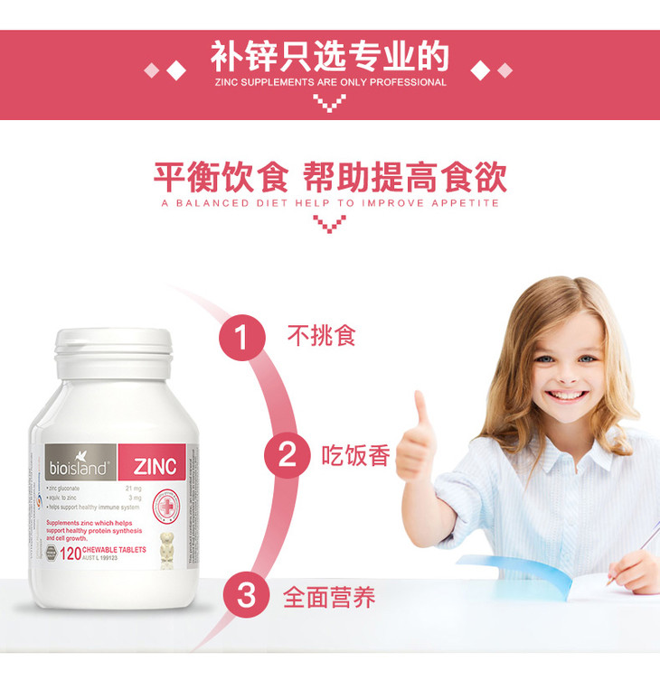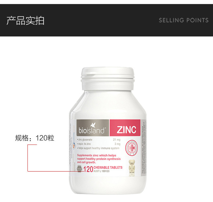 澳洲 Bioisland 生物岛 婴幼儿小熊锌片 120粒 跨境购