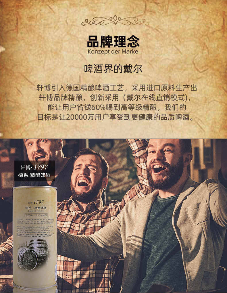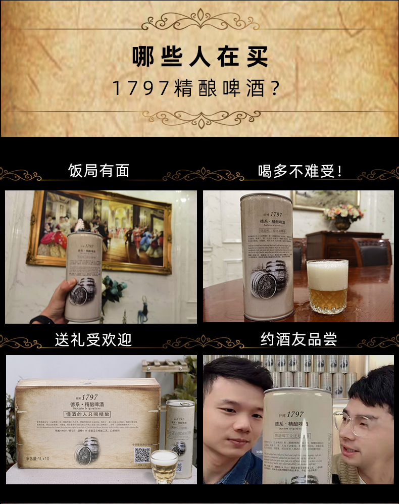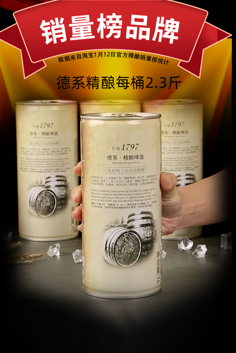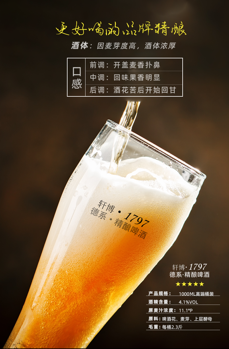 【DD严选】【限时买2送2】德国工艺1797轩博精酿原浆啤酒1000ml*4罐整桶装鲜啤扎啤白啤生啤小麦啤