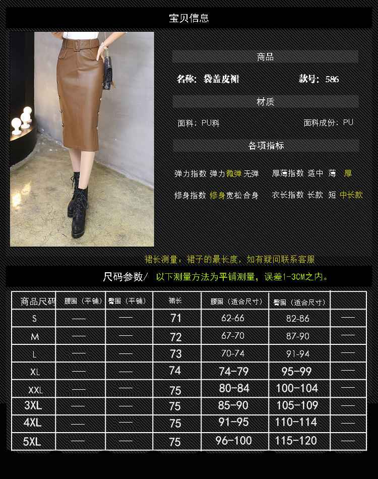 SX-586秋季新款包臀皮裙卡其钮扣开叉裙