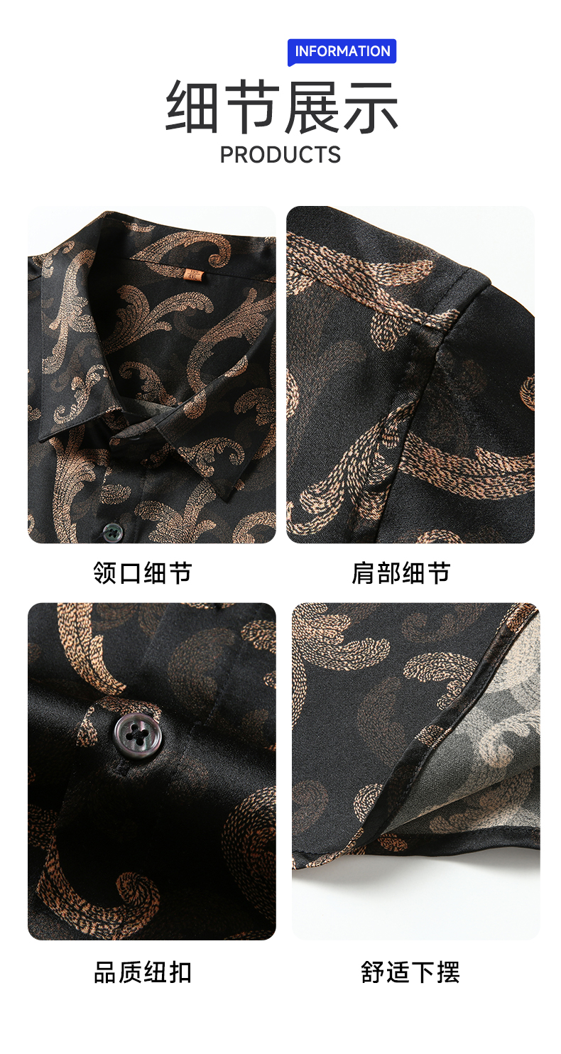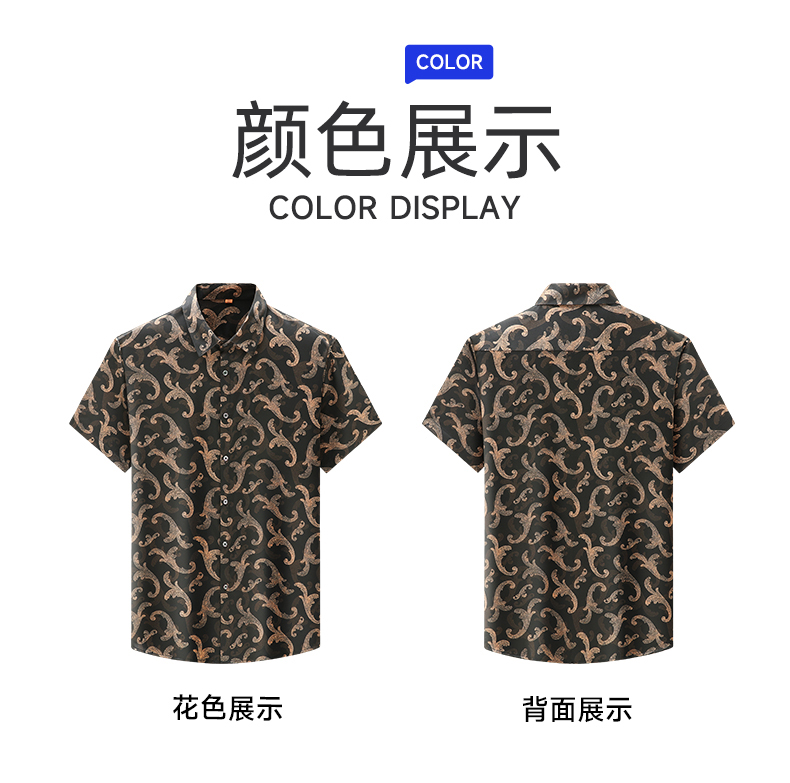 【桑蚕丝】【新款DWP】大依优型大码桑蚕丝加肥加大衬衫男士胖子透气顺滑男装半袖花衬衫