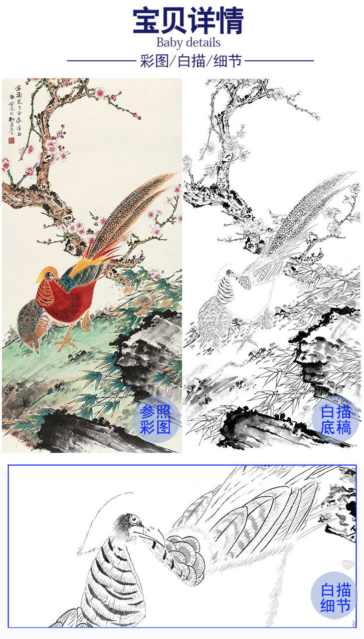 田世光工笔竖幅花鸟白描底稿-SG51