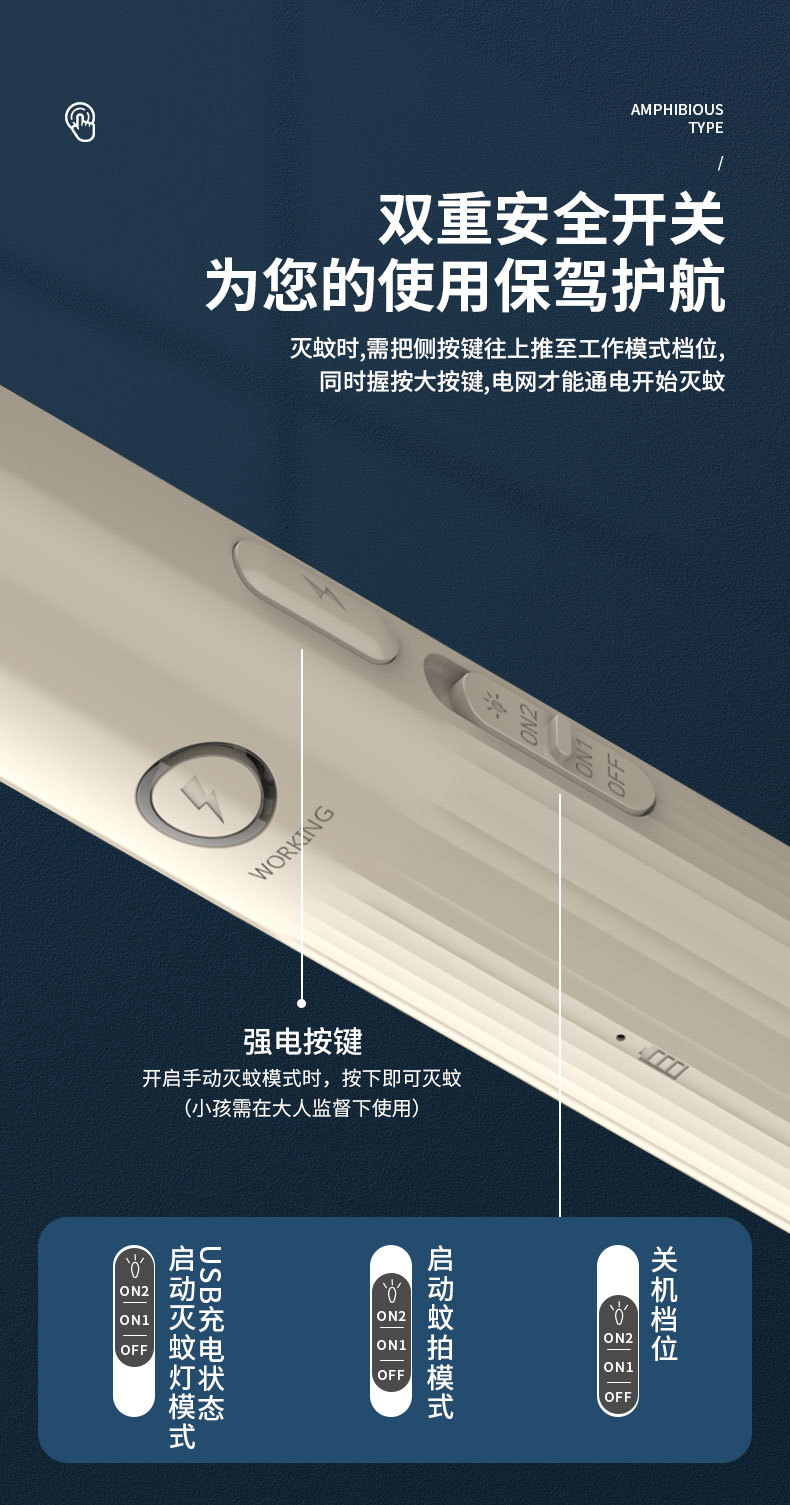 【电蚊拍+灭蚊灯】双模式电蚊拍空间光学诱捕技术捕蚊更显著三层护网物理灭蚊充电式底座大电容电池灭蚊灯杀虫