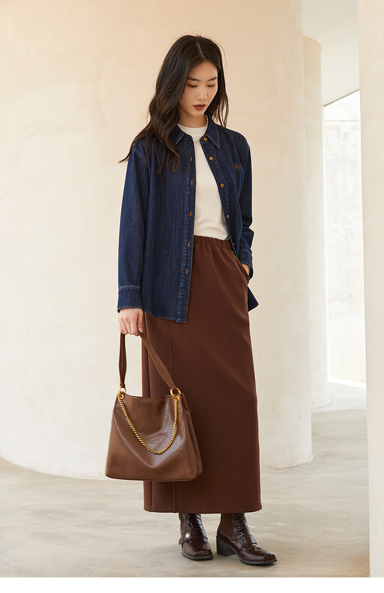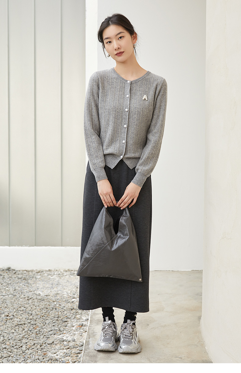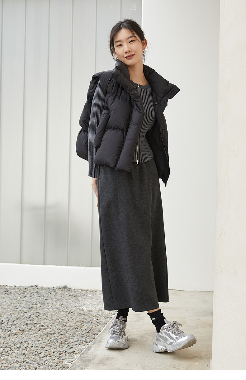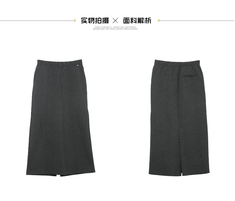 深灰色高腰针织半身裙 松紧腰显瘦中长款直筒裙 秋冬简约百搭开衩设计休闲裙