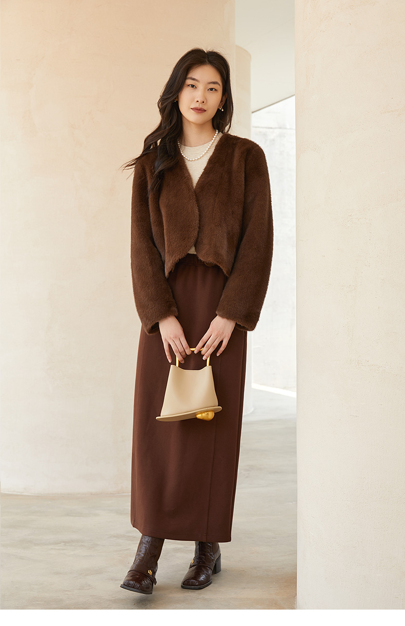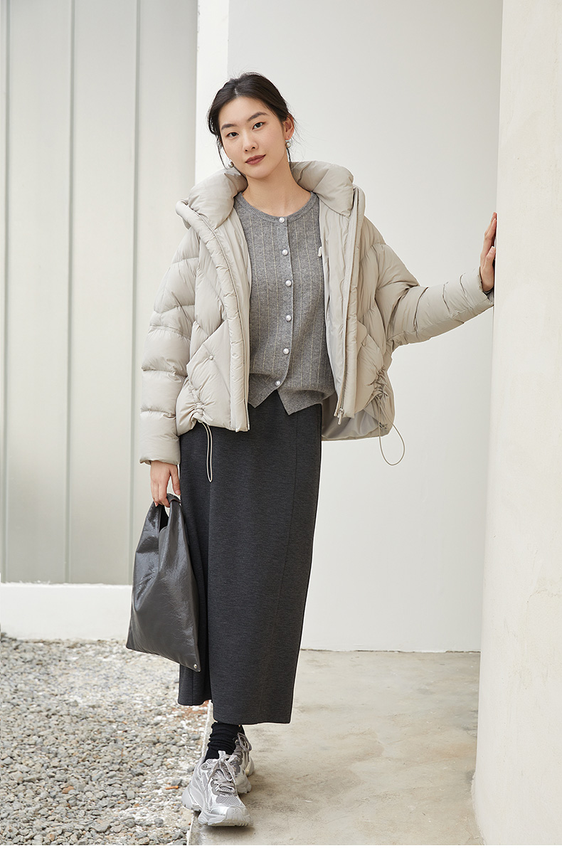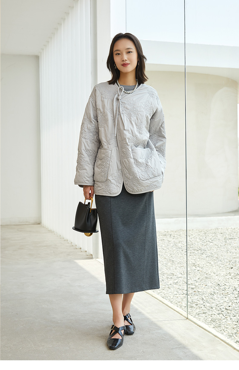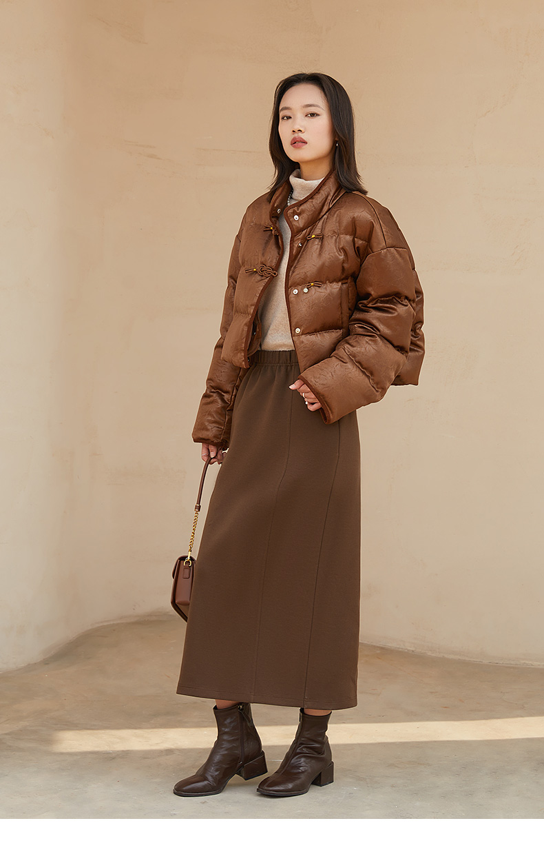 深灰色高腰针织半身裙 松紧腰显瘦中长款直筒裙 秋冬简约百搭开衩设计休闲裙