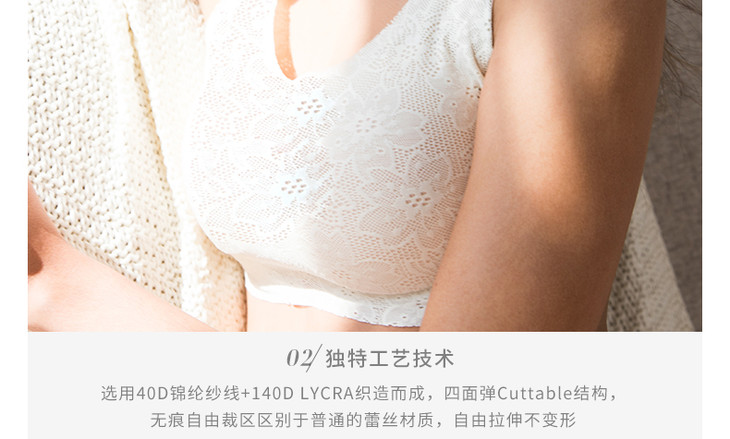 Ubras品牌店性感魅力樱花蕾丝无痕0压力无钢圈背心女文胸罩内衣