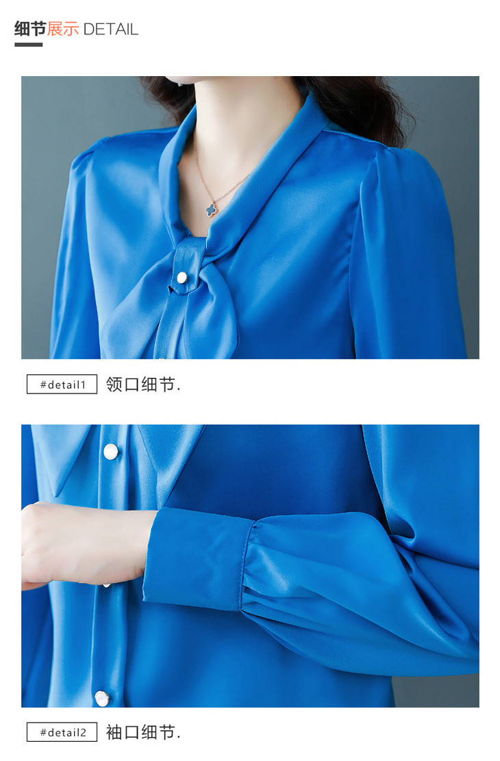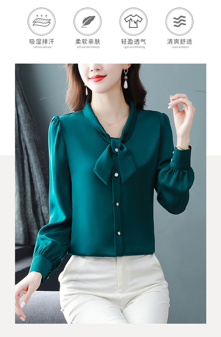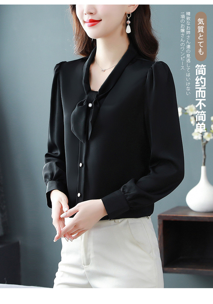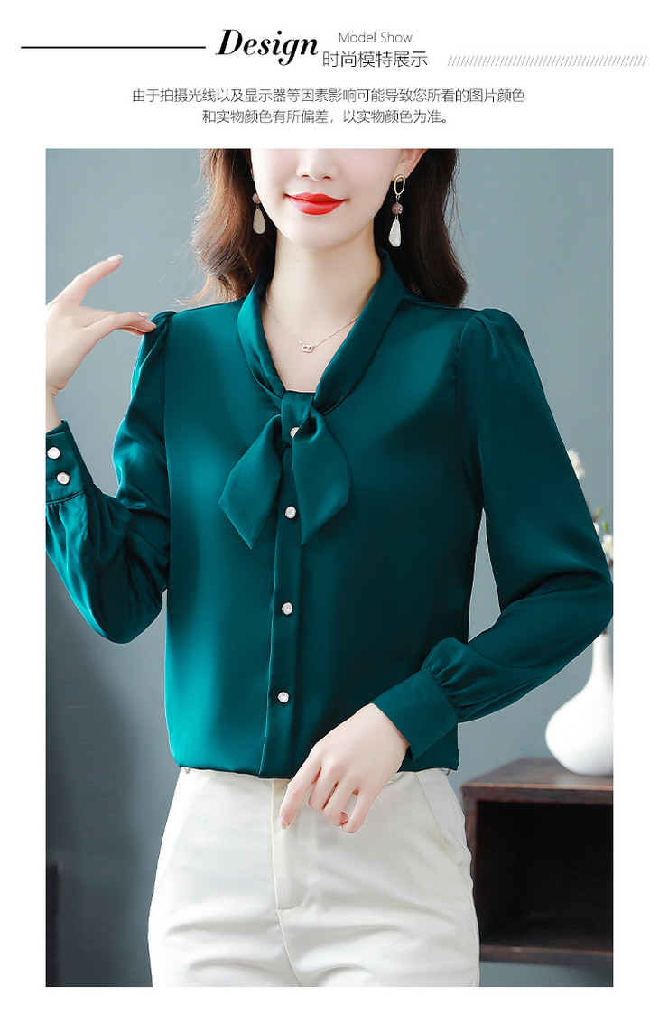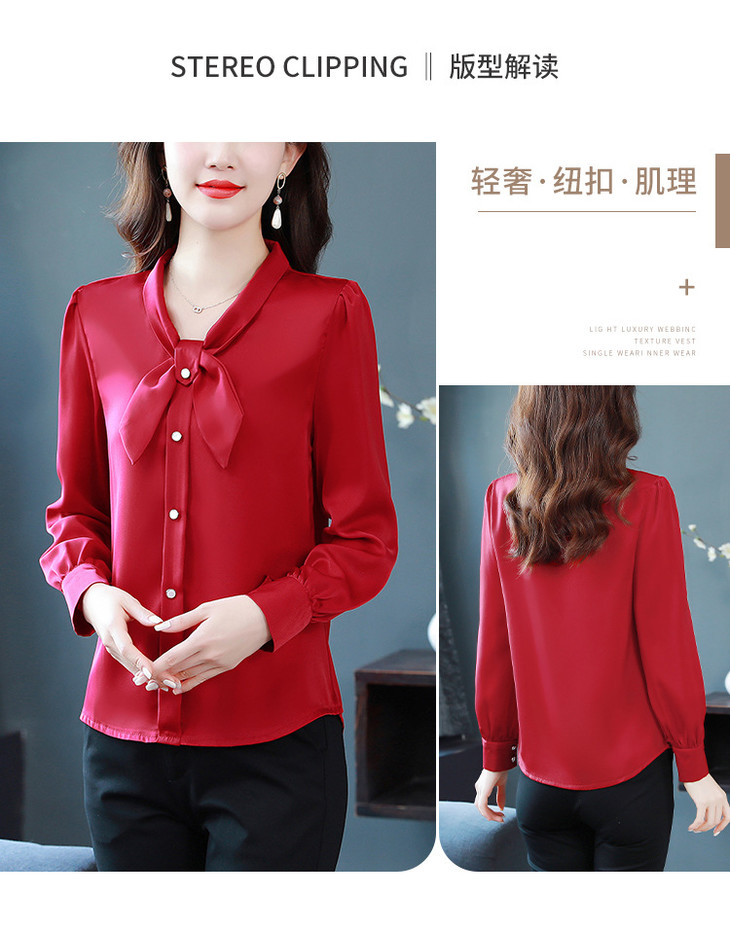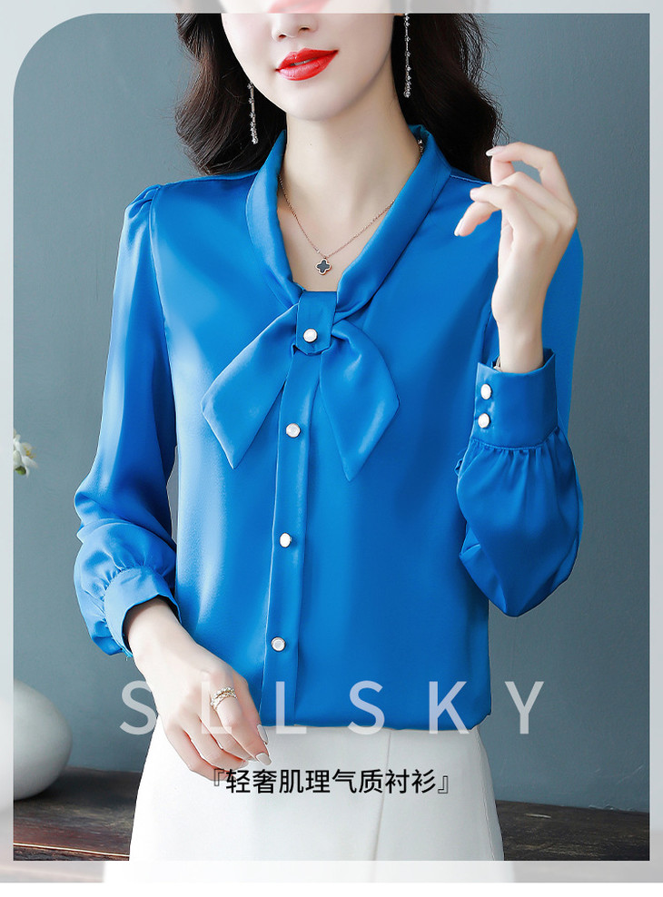 重磅仿真丝衬衫长袖新款时尚法式复古港味气质仿桑蚕丝上衣女YH-118036