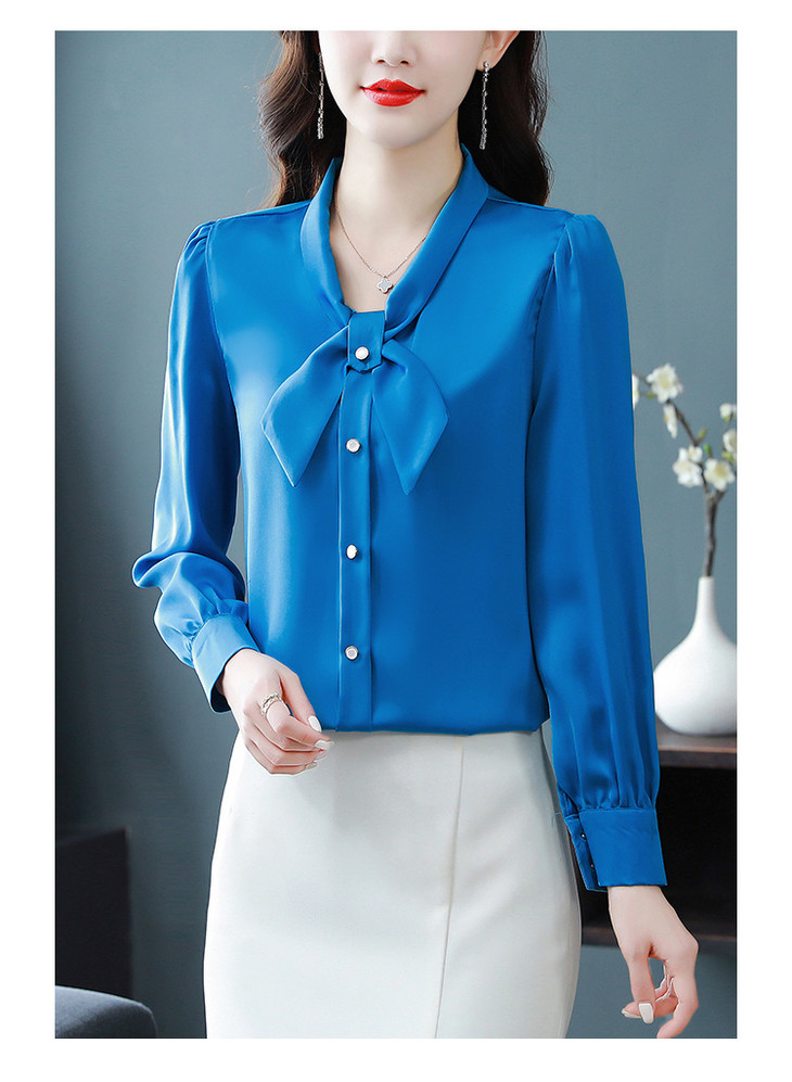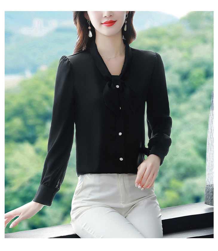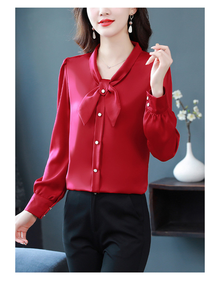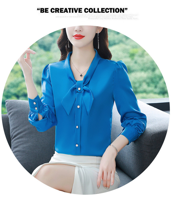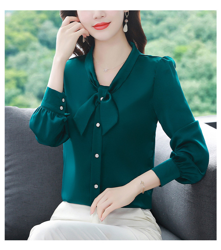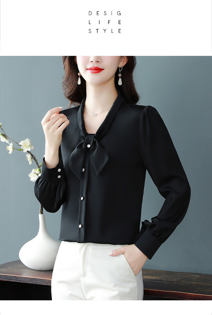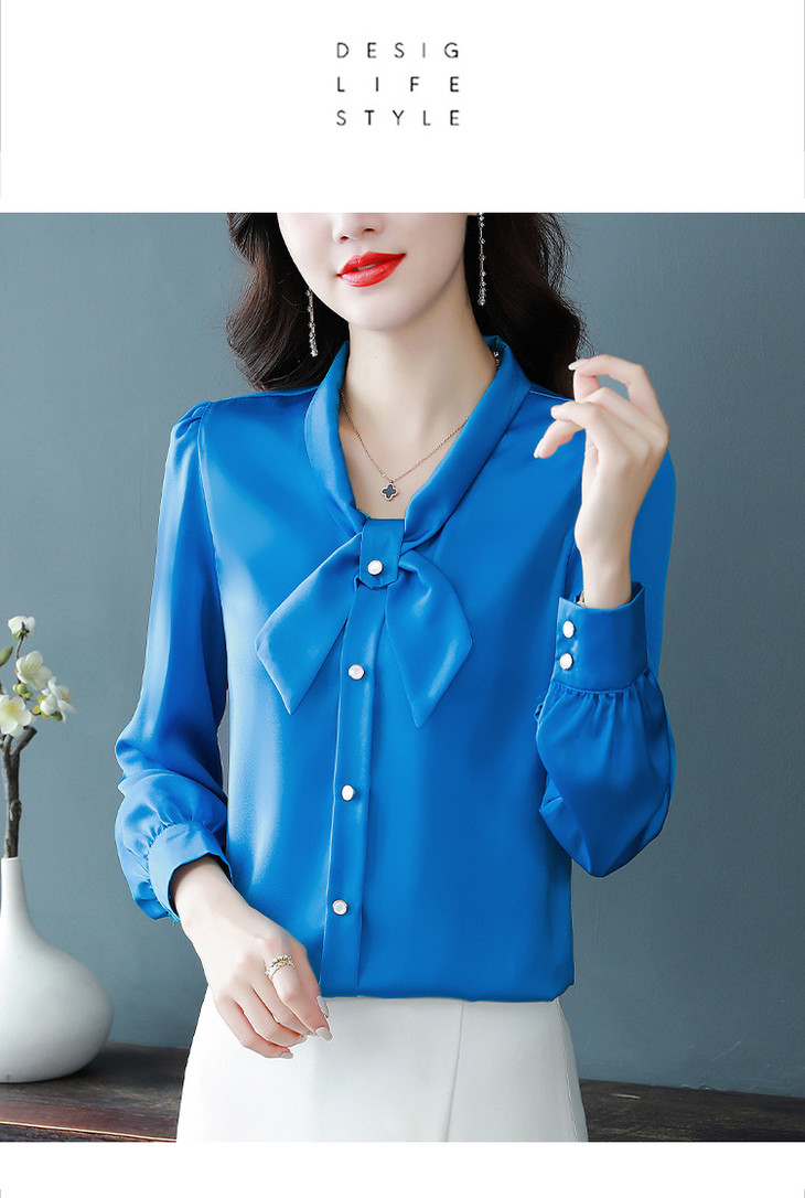重磅仿真丝衬衫长袖新款时尚法式复古港味气质仿桑蚕丝上衣女YH-118036
