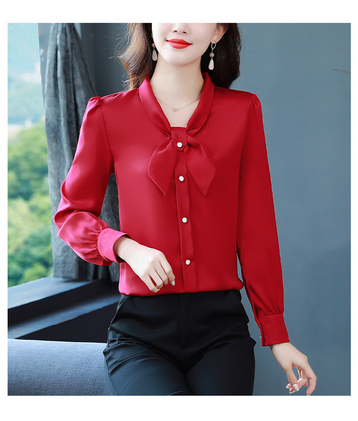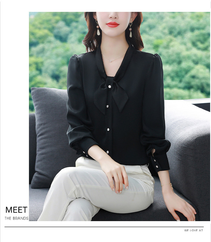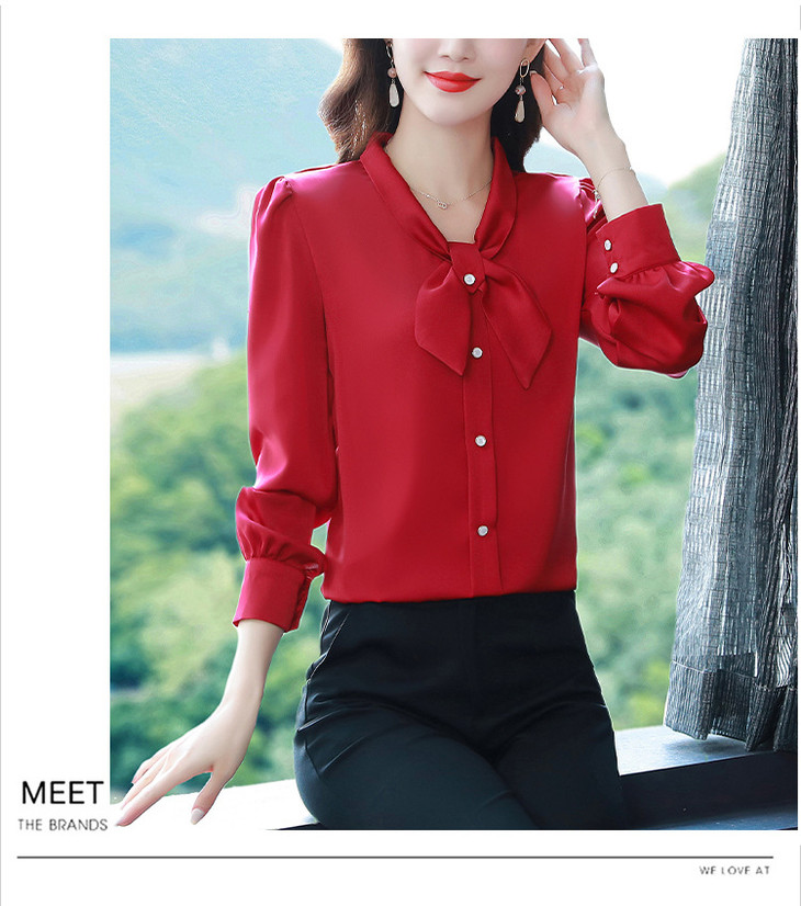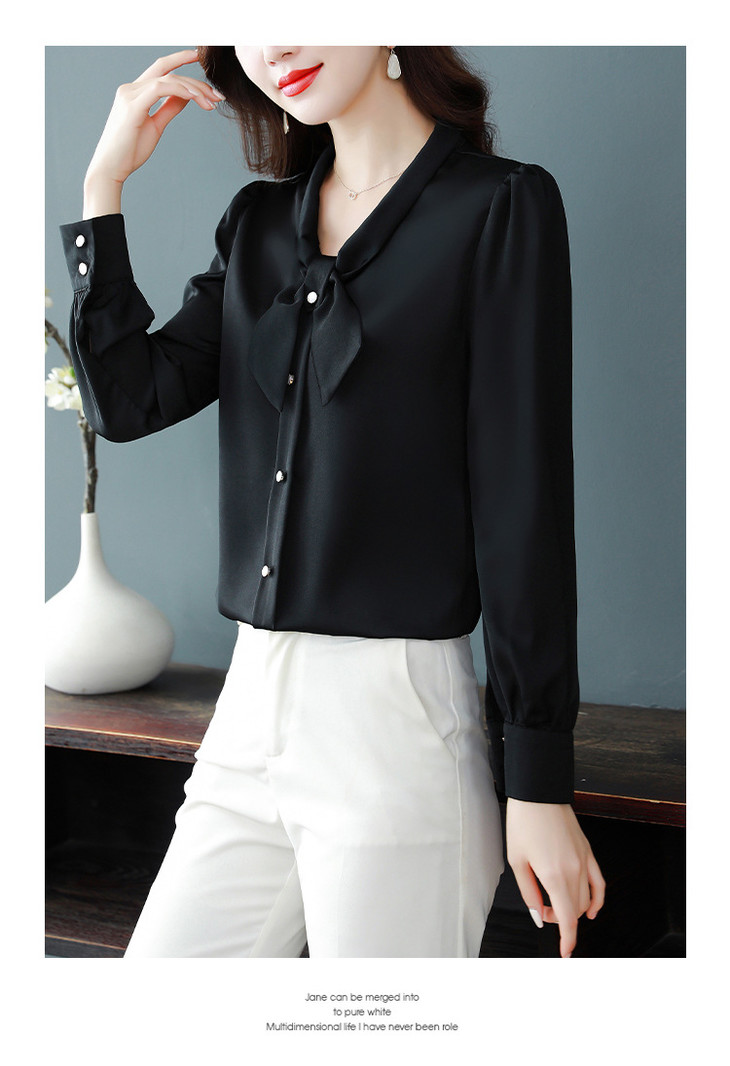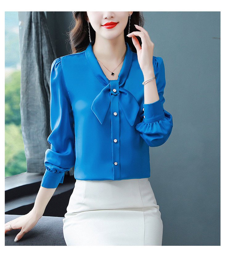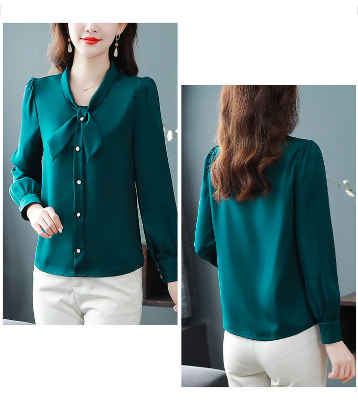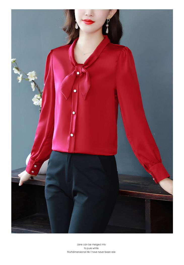 重磅仿真丝衬衫长袖新款时尚法式复古港味气质仿桑蚕丝上衣女YH-118036