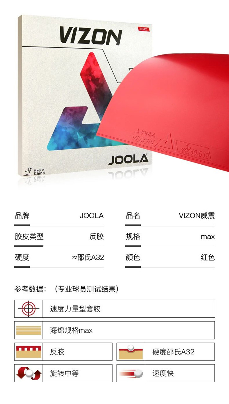 优拉JOOLA VIZON威震MIERON紫薇尤拉乒乓球粘性反胶胶皮套胶
