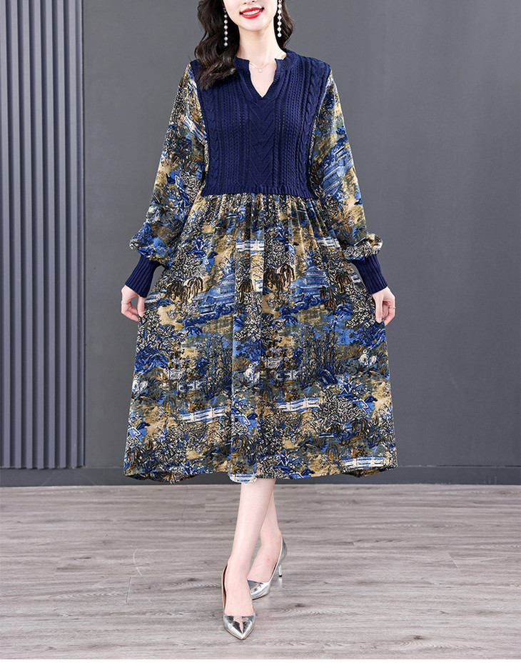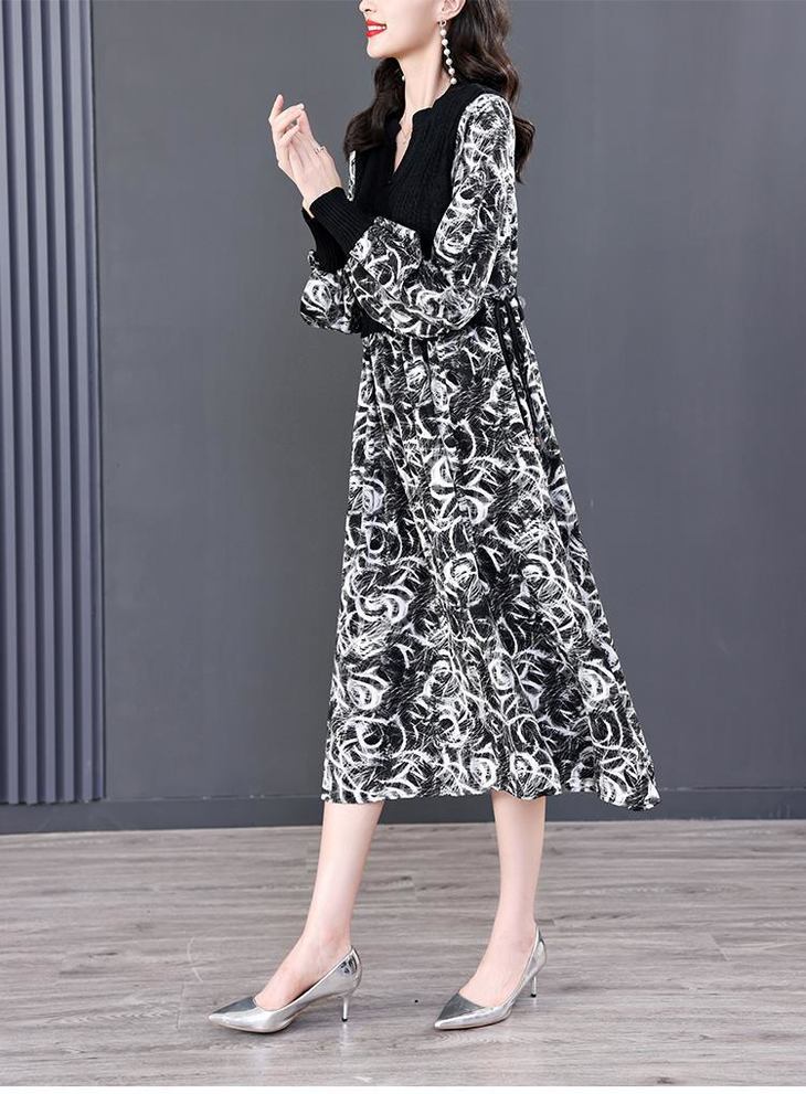 KLY1154 春夏新款气质两件套中腰修身印花七分袖连衣裙