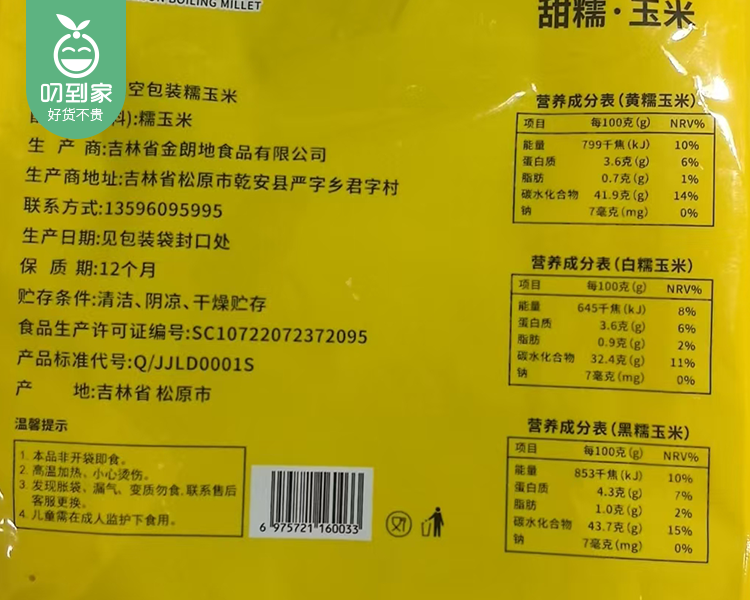 e人煮黍甜黑糯鲜玉米/1袋(220g*8支)生产日期:25年9月