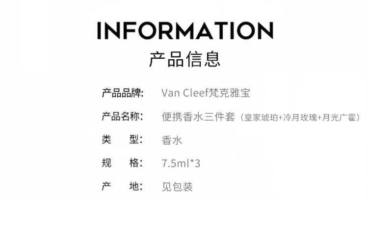 【保税仓】Van Cleef梵克雅宝便携香水三件套(皇家琥珀7.5ml+冷月玫瑰7.5ml+月光广霍7.5ml)